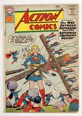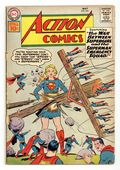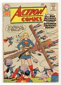 $50.00Cover pencils by Curt Swan, inks by Stan Kaye. "The War Between Supergirl and the Supermen Emergency Squad!", script by Robert Bernstein, pencils by Wayne Boring, inks by Stan Kaye; John Kiley tricks Superman into revealing he's Clark Kent; After trapping Clark Kent with Kryptonite, Supergirl and the Superman Emergency Squad spring into action. One-page Varsity Vic story by Henry Boltinoff. 1st appearance of Brainiac 5, Phantom Girl, Triplicate Girl, Bouncing Boy, Sun Boy, and Shrinking Violet in "Supergirl's Three Super Girl-Friends!", script by Jerry Siegel, art by Jim Mooney; Supergirl and Brainiac 5 join the Legion. 36 Pages, Full Color. $.10 Cover price $0.10.