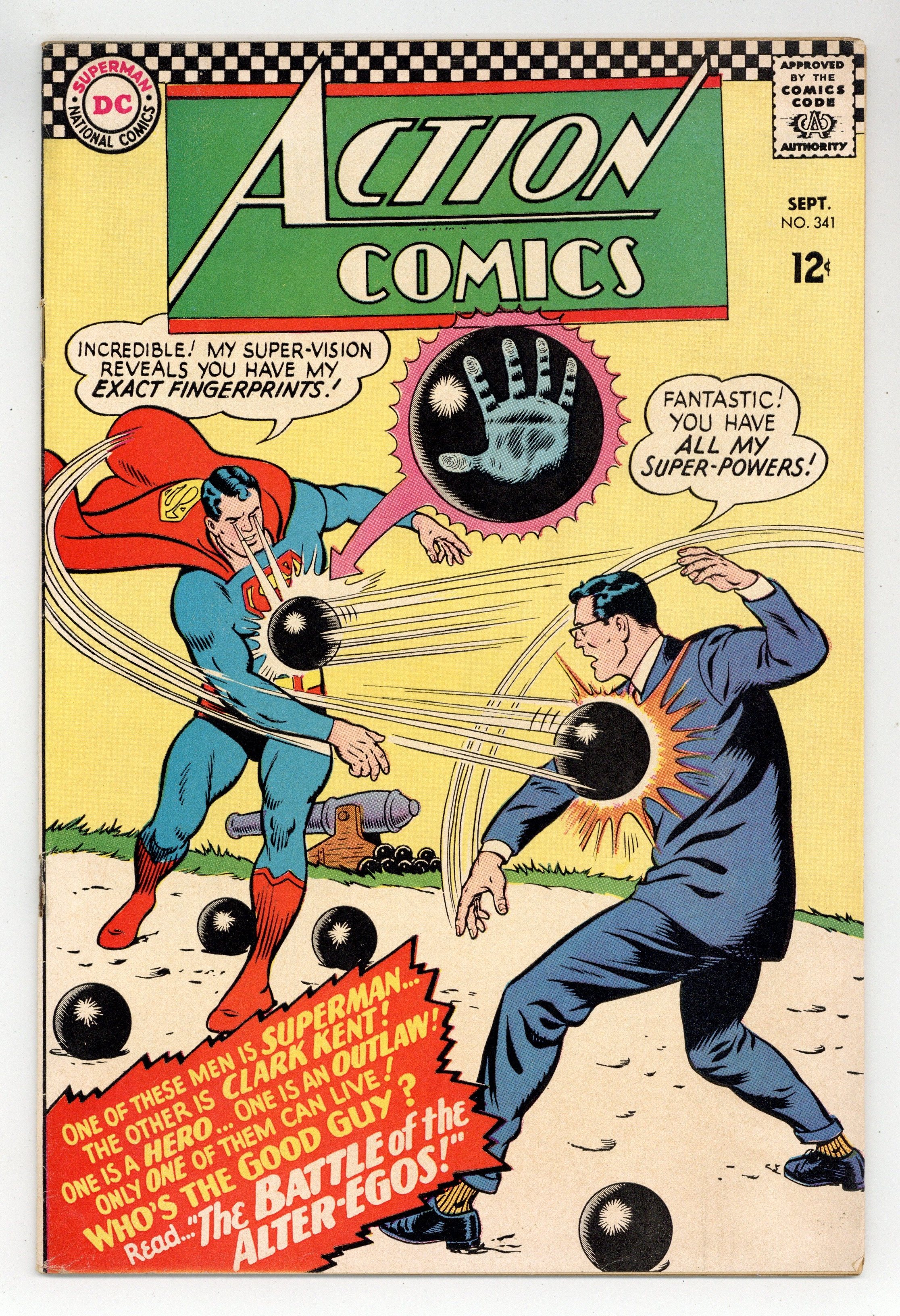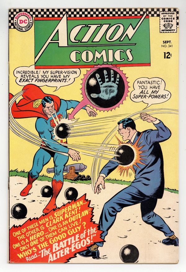 Tags: Superman$16.75Cover pencils by Curt Swan, inks by George Klein. "Superman Versus Super Clark Kent!", script by Otto Binder, art by Al Plastino; An atomic explosion seems to split Superman and Clark Kent into separate people, but it's a plot by Professor Vakox to trap Superman in the Phantom Zone. Challengers of the Unknown ad. Brief Batman appearance in Supergirl reprint, "The Four Helpless Heroes!", script by Jerry Siegel, art by Jim Mooney; With Superman on a space mission, Supergirl has a day full of emergencies to deal with, but there's a big surprise at the end of it. Superman's Girl Friend Lois Lane ad. 36 Pages, Full Color. $0.12 Cover price $0.12.