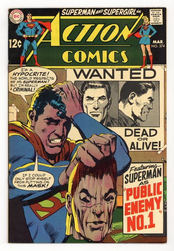 Cover by Neal Adams. "Alias Super-Thief!", script by Otto Binder, pencils by Curt Swan, inks by Jack Abel; The amnesiac Superman now believes that he is a criminal called Super-Thief and even leads his gang in crimes. One-page Super-Turtle story by Henry Boltinoff. "No Mercy for Supergirl!", script by Leo Dorfman, art by Kurt Schaffenberger; The Avenger, an alien from the planet Sarkon, sentences Supergirl to death for killing a plant and a butterfly during her college studies as Linda Danvers. Zeroids toy ad. The letters page contains a statement of ownership - average print run 695,000; average paid circulation 423,000. 36 Pages, Full Color. $0.12 Cover price $0.12.
