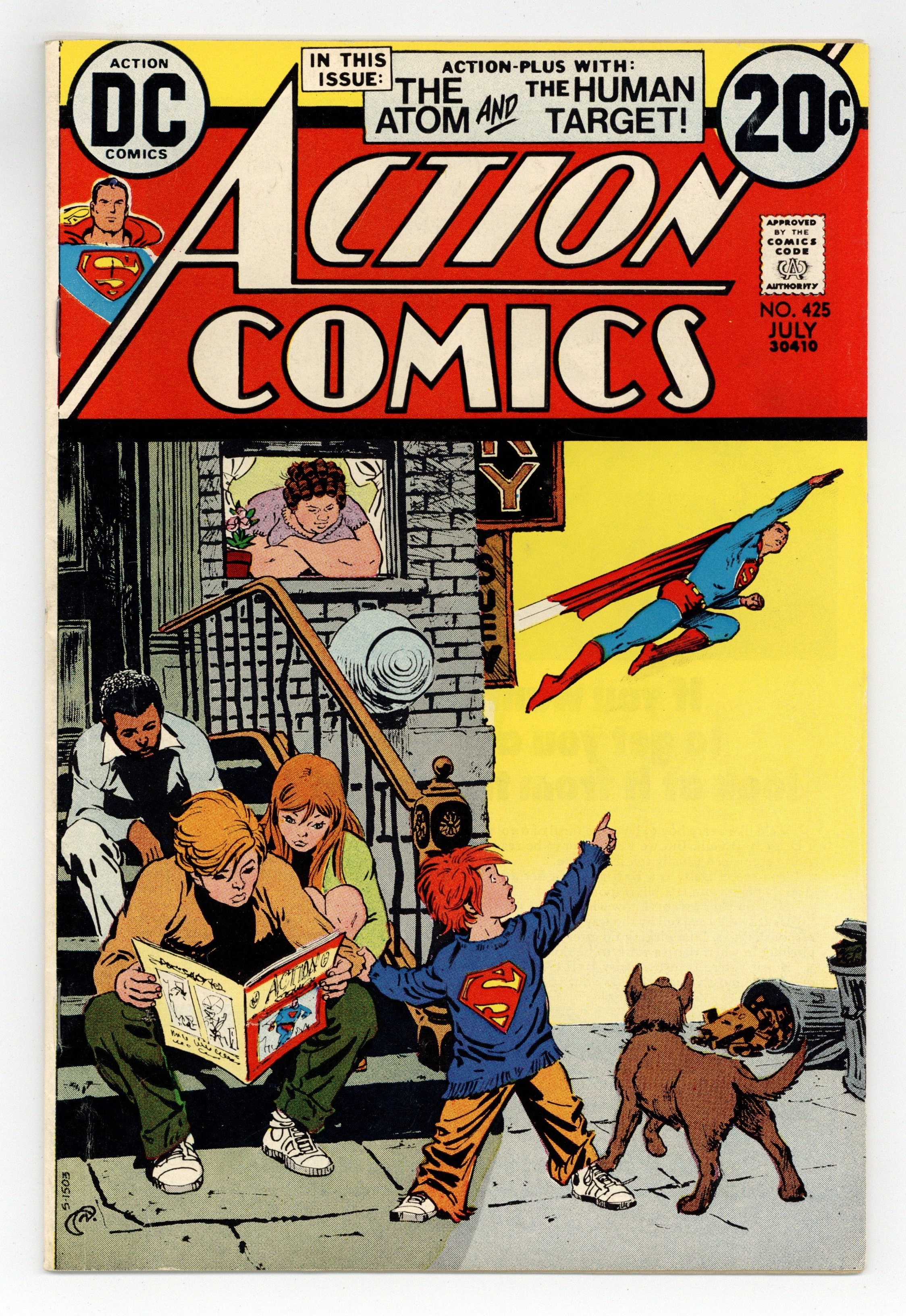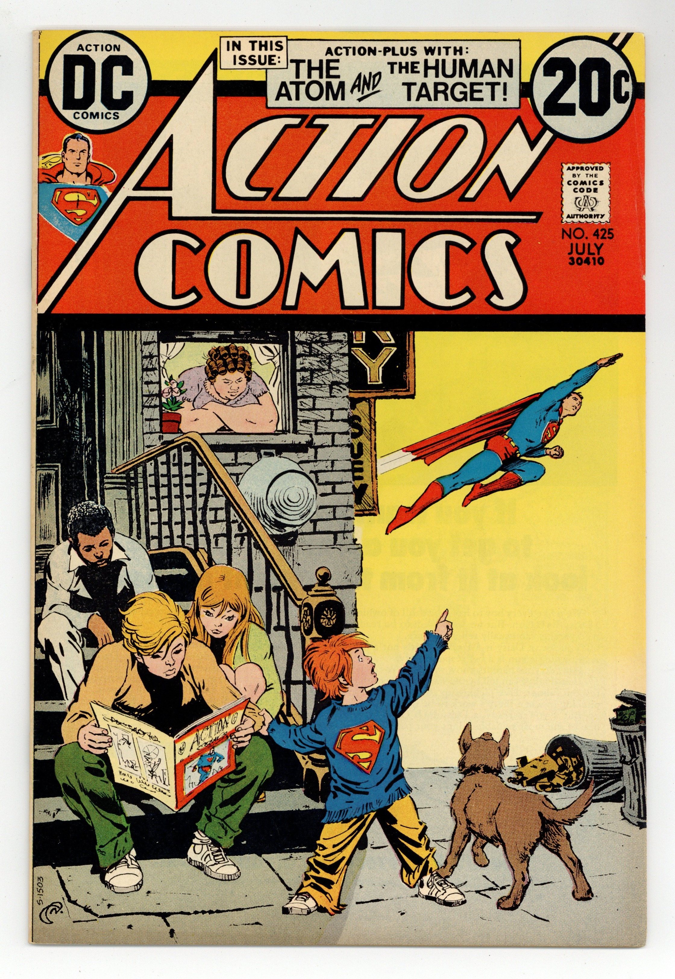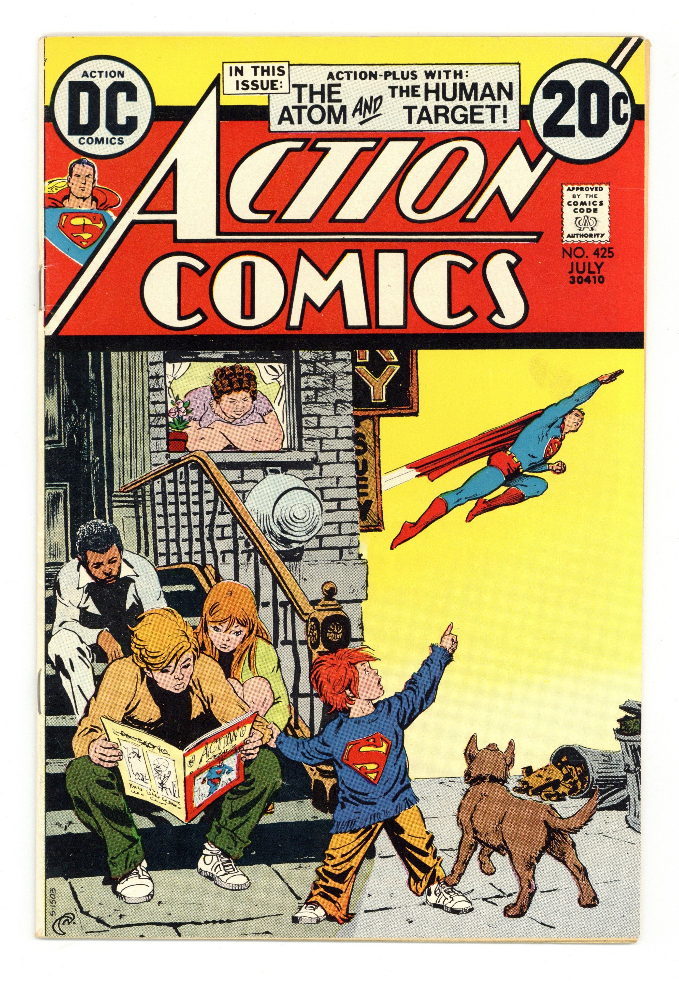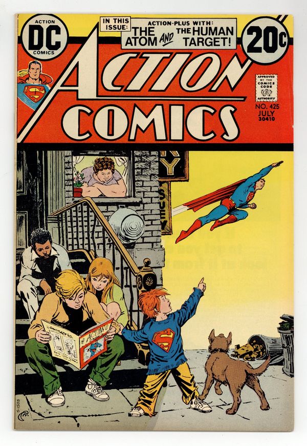 Cover by Nick Cardy. "The Last Moa on Earth!", script by Cary Bates, pencils by Curt Swan, inks by Frank Giacoia; The hunter Jon Halaway shoots the last of the moa birds and is guilt-ridden by this; Eventually he finds a moa egg and returns to Metropolis; The moa hatches and has gained super-powers. "13 Old Men Who Run the World!" starring the Atom, script by Elliot S! Maggin, pencils by Dick Dillin, inks by Mike Esposito and Frank Giacoia (as Phil Zupa); Jean Loring is defending Dr. Selzheim in a case where he is framed by a mafia boss for stealing gold bullion. "The Short-Walk-to-Disaster Contract!", script by Len Wein, pencils by Neal Adams, inks by Dick Giordano; Human Target is hired by his servant Luigi to pose as Luigi's cousin Antonio; He is a circus artist, and his act has been sabotaged a couple of times. 36 Pages, Full Color. $0.20 Cover price $0.20.