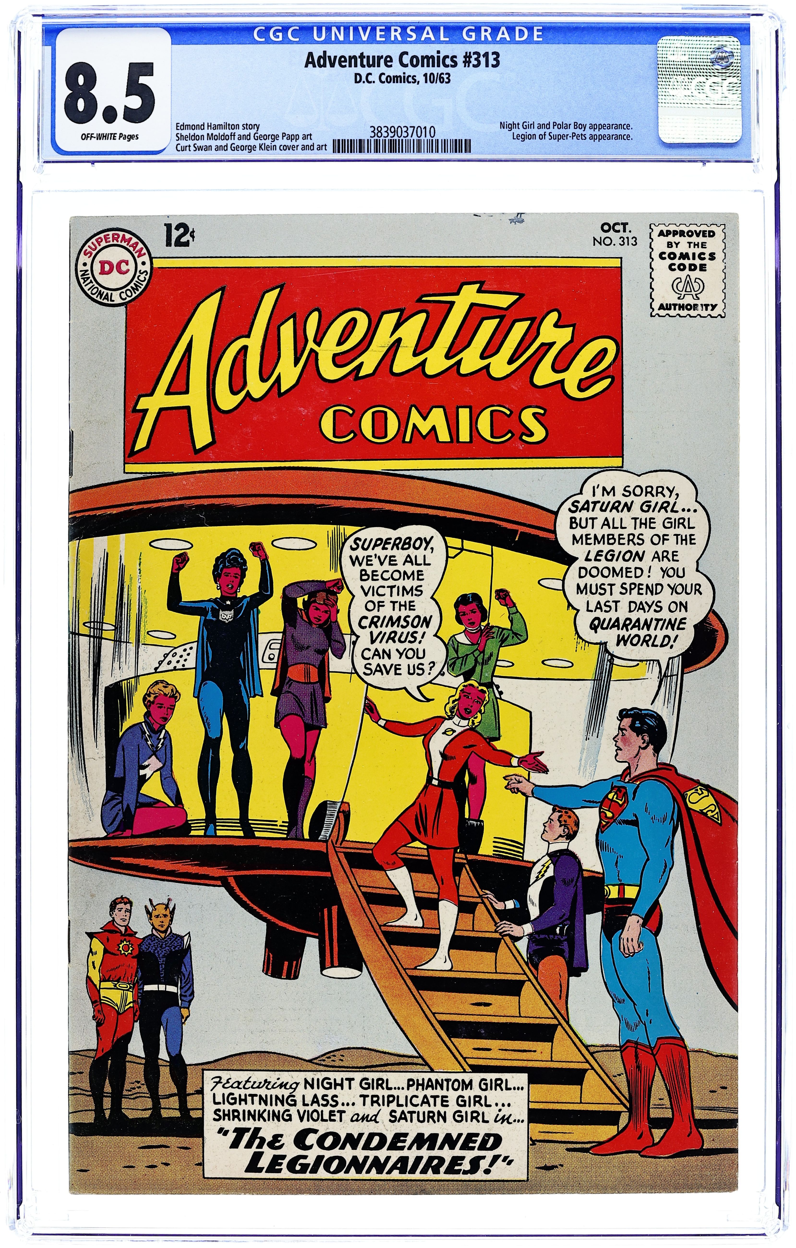 Cover pencils by Curt Swan, inks by George Klein. Part I: The Condemned Legionnaires!--Tales of the Legion of Super-Heroes, script by Edmond Hamilton, pencils by Curt Swan, inks by George Klein; After the female Legionnaires are struck by a mysterious Crimson Virus, Satan Girl wants to take their place. Part II: The Secret of Satan Girl!--Tales of the Legion of Super-Heroes, script by Edmond Hamilton, pencils by Curt Swan, inks by Sheldon Moldoff; Satan Girl is defeated by the Super-Pets and revealed to be an evil Red Kryptonite duplicate of Supergirl. Father's Day on Planet Krypton, script by Leo Dorfman and Mort Weisinger, art by George Papp; Superboy learns about the Kryptonian Father's Day. 36 pages, Full Color. Cover price $0.12.