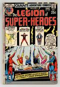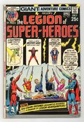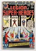 Tags: Giant-Sized Issue$20.0068-page Giant G-81; Legion of Super-Heroes reprints. Cover pencils by Curt Swan, inks by Murphy Anderson. The Stolen Super-Powers! (from Adventure 304), script by Jerry Siegel, art by John Forte; Saturn Girl tries to sacrifice herself as the Legionnaire predicted to die fighting Zaryan, but Lightning Lad dies instead. The Secret of the Mystery Legionnaire (from issue 305), script by Jerry Siegel, art by John Forte; Mon-El finally leaves the Phantom Zone and joins the Legion full-time. The Return of Lightning Lad! (from issue 308), script by Edmond Hamilton, art by John Forte. Part I: The Super Sacrifice of the Legionnaires! (from issue 312), script by Edmond Hamilton, art by John Forte. Part II: The Bravest Legionnaire! Special new features: Fashions from Fans presents alternate costumes suggested by fans (pencils by Ross Andru, inks by Mike Esposito) and a two-page Diagram of Legion Headquarters Complex. 68 Pages, Full Color. Cover price $0.25.