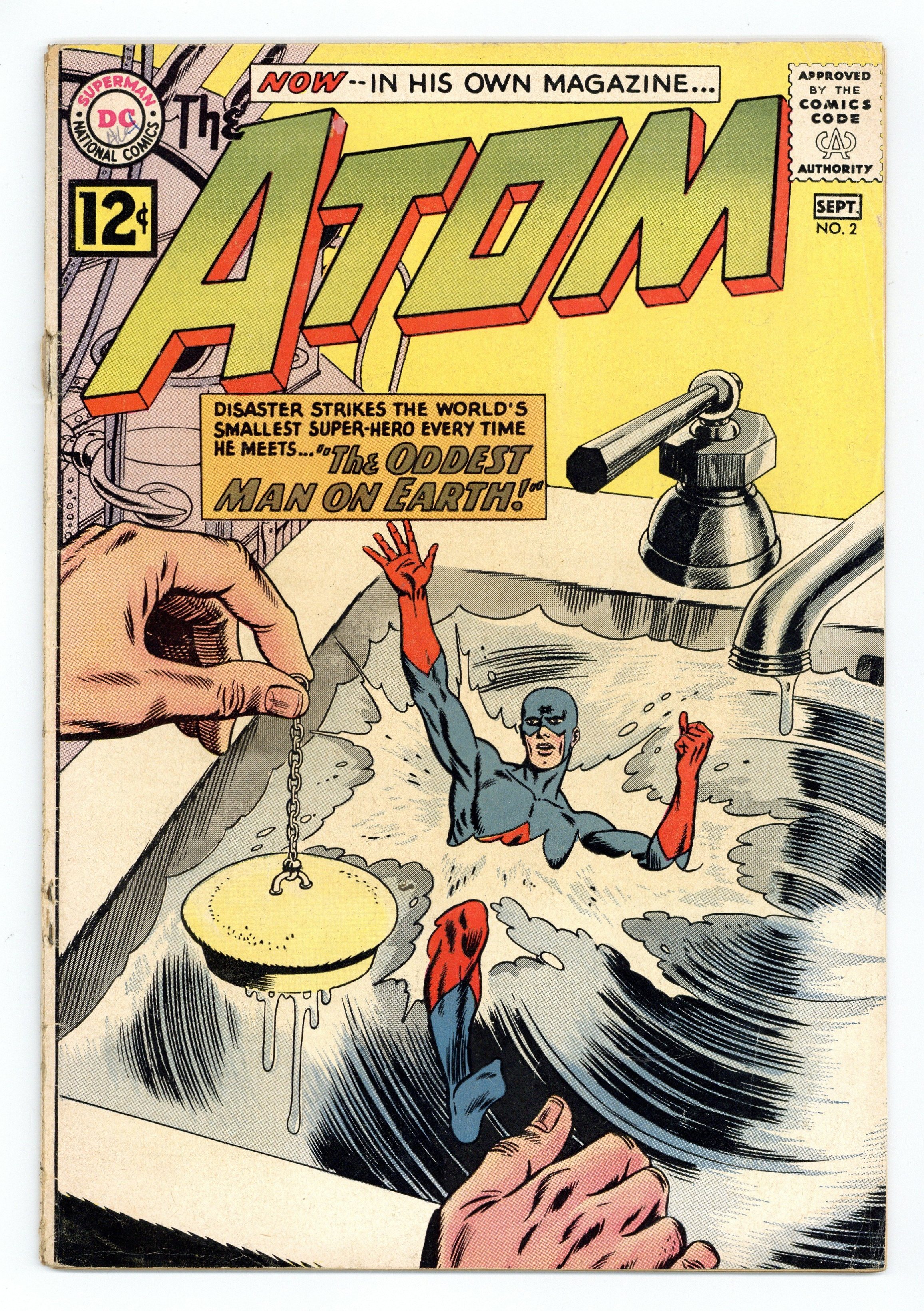 Cover pencils by Gil Kane, inks by Murphy Anderson. "The Oddest Man on Earth!", script by Gardner Fox, pencils by Gil Kane, inks by Murphy Anderson; Ray Palmer meets Mister Odd, who appears to be a catalyst for odd occurrences. "The Prisoners Who Vanished!", script by Gardner Fox, pencils by Gil Kane, inks by Murphy Anderson; The Atom ends up foiling the plans of Carl Ballard again, even though Carl has discovered a way to use Europium for teleportation. Letter to the editor from comic artist Dave Cockrum. 36 pgs., full color. $0.12. Cover price $0.12.