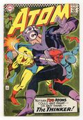 Cover by Gil Kane. 1st solo Golden Age Atom appearance in Silver Age in "The Thinker's Earth-Shaking Robberies!", script by Gardner Fox, pencils by Gil Kane, inks by Sid Greene; Ray Palmer and Jean Loring are on a date, looking over rare book ends; Everyone in the exhibit hall suddenly doubles over in pain; Ray spots the Thinker attempting to rob the book end; Ray changes to the Atom and attempts to stop the Thinker, whose henchmen attack him with harpoon guns. Statement of ownership - average print run 390,000; average paid circulation 232,850. 36 pgs., full color. $0.12. Cover price $0.12.