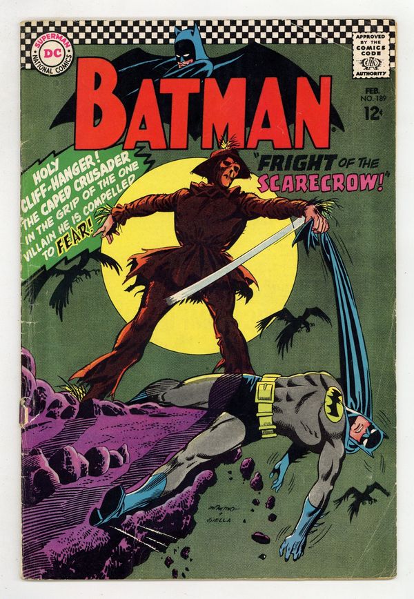 Tags: Print Run Statistics$405.00Cover pencils by Carmine Infantino, inks by Joe Giella. 1st Silver Age appearance of Scarecrow in book-length story, "Fright of the Scarecrow!", script by Gardner Fox, pencils by Sheldon Moldoff (as Bob Kane), inks by Joe Giella; While entertaining some children in the park, Dick happens to notice the Scarecrow retrieving buried loot from a past robbery; He calls in Batman and together they battle their old foe until they are blinded by Scarecrow's fear gas. Little Pete humor half-page by Henry Boltinoff. Letter from comic book writer Mark Evanier. Peace on Earth public service announcement. Eyes Front! humor half-page by Henry Boltinoff. 36 Pages, Full Color. Cover price $0.12.