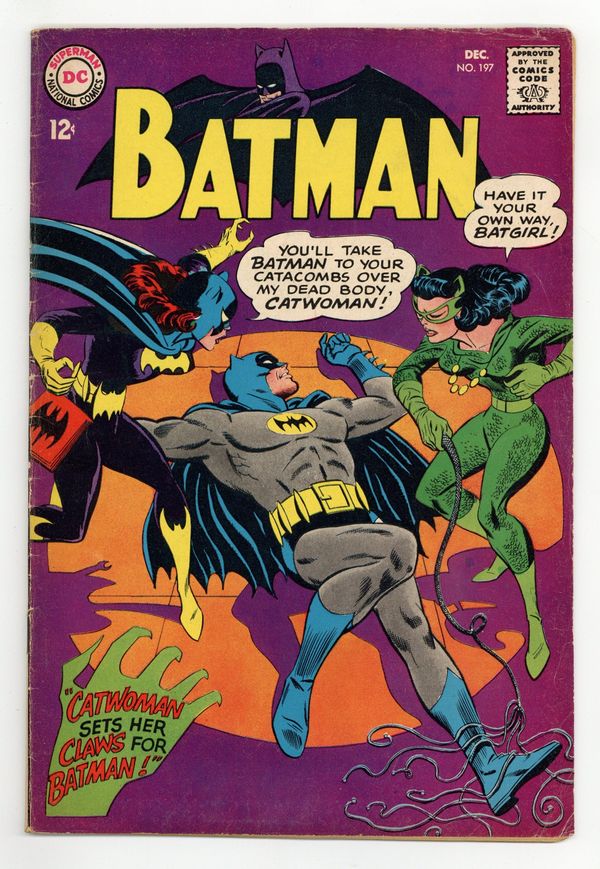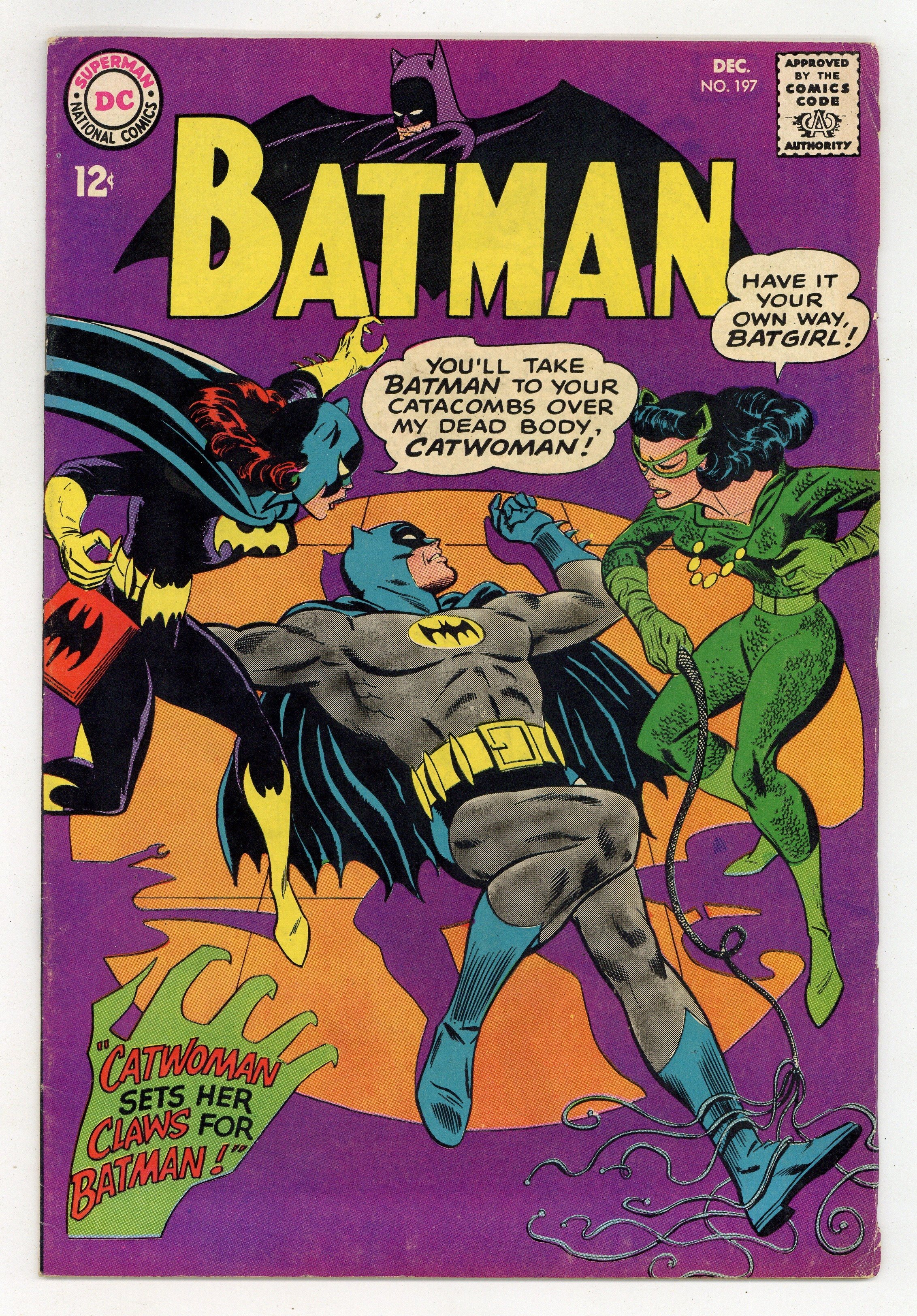 Tags: Batman$44.00Cover pencils by Carmine Infantino, inks by Mike Esposito. 4th Silver Age appearance of Catwoman in book-length story, "Catwoman Sets Her Claws for Batman!", script by Gardner Fox, pencils by Frank Springer (as Bob Kane), inks by Sid Greene; Catwoman decides to reform and become a crime fighter like Batman in order to get him to somehow propose to her; When he doesn't, she gives him an ultimatum: to marry her or she returns to crime! Letters to the editor from comics historian Peter Sanderson Jr. and Bob Pinaha (New England Comics). Cap's Hobby Hints activity half-page by Henry Boltinoff. 36 Pages, Full Color. Cover price $0.12.