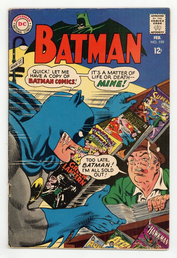 Tags: Batman$19.00Cover pencils by Carmine Infantino, inks by Murphy Anderson. "Peril of the Poison Rings!", script by Gardner Fox, pencils by Sheldon Moldoff (as Bob Kane), inks by Joe Giella; After escaping from the clutches of the Dynamic Duo, Rembrandt Dickens decides to pursue the life of a comic book artist, detailing the crimes he has committed; But when his gang is released from prison, Dickens gives each of them poison rings, one of which scratches the Batman, and he will die...unless he finds the latest copy of Batman Comics, which contains a clue to Dickens' whereabouts and antidote for the poison. "Seven Steps to Save Face!", script by Gardner Fox, pencils by Sheldon Moldoff (as Bob Kane), inks by Joe Giella; Crooks capture Robin and replace him with a midget criminal, who is saved by Batman and taken to the Bat-Cave before the Caped Crusader realizes his mistake. "Operation Escape!", art by Jim Mooney; Robin gives a lecture at Gotham Police College on resourcefulness and initiative, using sports equipment as visual aids, then shows a film about a case he was on without Batman; Robin recognized one of the crooks, and allowed them to get away, hoping they would lead him to their boss. 36 Pages, Full Color. Cover price $0.12.
