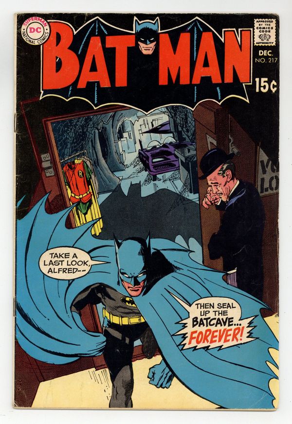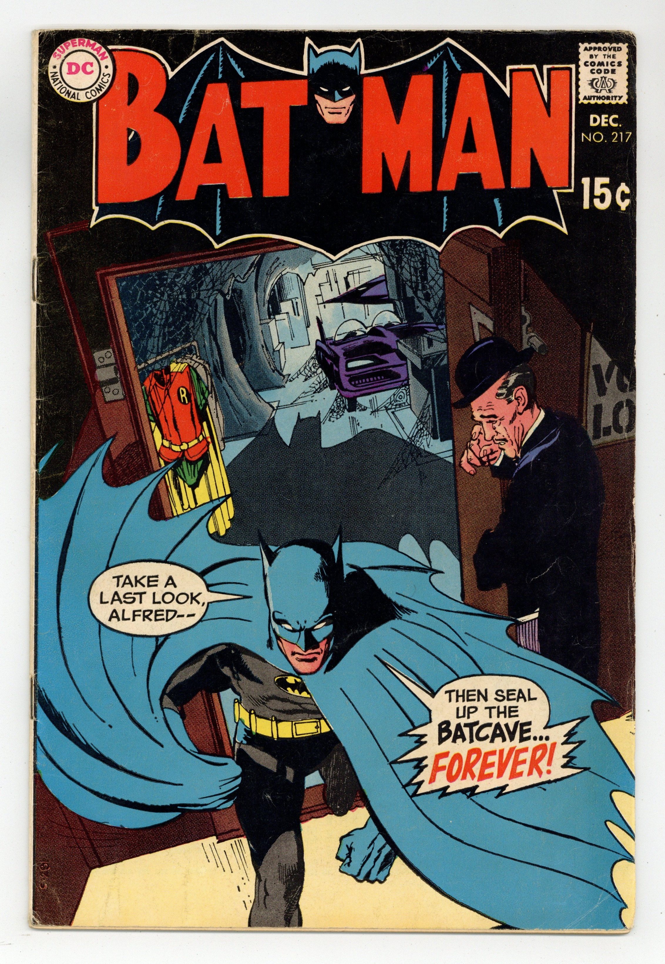 Cover by Neal Adams. Batman and Robin in book-length story, "One Bullet Too Many!" Script by Frank Robbins, pencils by Irv Novick, inks by Dick Giordano; Breakup of Batman & Robin team; Dick Grayson goes to college; Bruce and Alfred move from Wayne Manor to the Wayne Foundation. Strange Old Laws non-fiction humor page by Henry Boltinoff. 36 Pages, Full Color. Cover price $0.15.