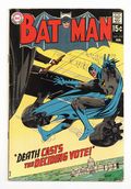 Tags: Batman$75.00Cover by Neal Adams. "Death Casts the Deciding Vote," script by Frank Robbins, pencils by Irv Novick, inks by Dick Giordano; Batman stops an airplane hijacking and gets a senator to Washington DC in time for a critical vote on an anti-crime bill. "The Silent Night of the Batman," script by Mike Friedrich, pencils by Neal Adams, inks by Dick Giordano; A peaceful night in Gotham allows Batman to spend time with James Gordon. Reprint fantasy story: "Time to Kill!", script by Jack Miller, art by John Giunta; Jed Bruno travels to the future to get revenge on his enemy. Letter to the editor from inker Klaus Janson. 36 Pages, Full Color. Cover price $0.15.