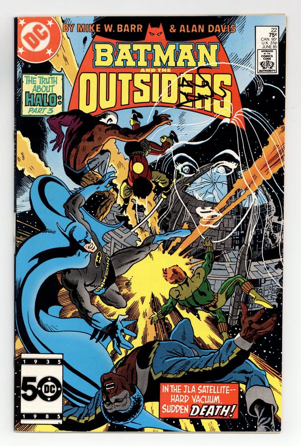1st Alan Davis comic work. Halo's buried memories resurface aboard the JLA satellite in "What She Is And How She Came To Be!" Script by Mike W. Barr, art by Alan Davis. Halo's origin tale concludes next issue. Davis cover. Cover price $0.75.