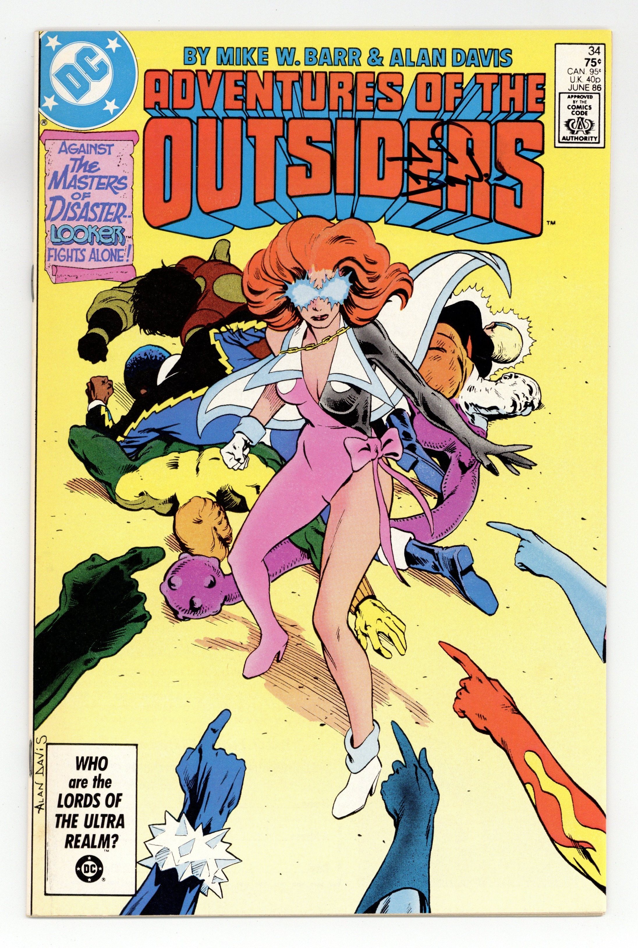 Looker arrives to help her teammates in "Against All Odds!" Part 2 of 3, continued from the previous issue. Story concludes next issue. Script by Mike W. Barr, pencils by Alan Davis, inks by Paul Neary. Masters of Disaster, Baron Bedlam appear. Davis cover. Cover price $0.75.