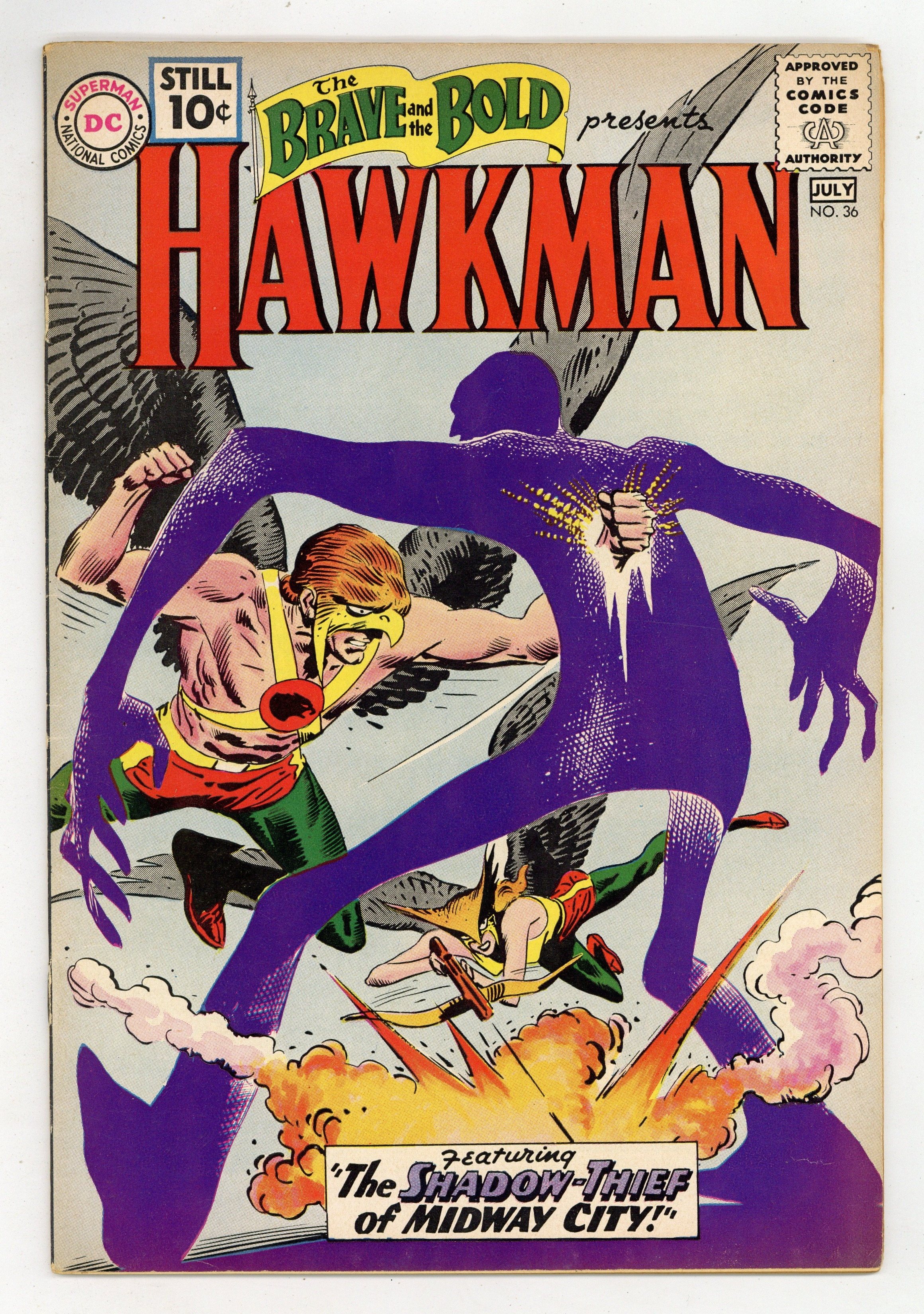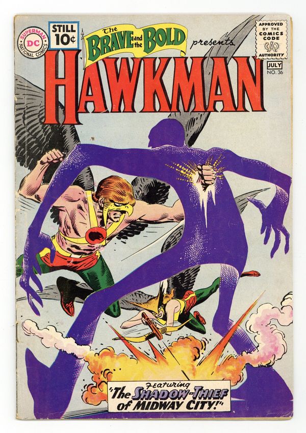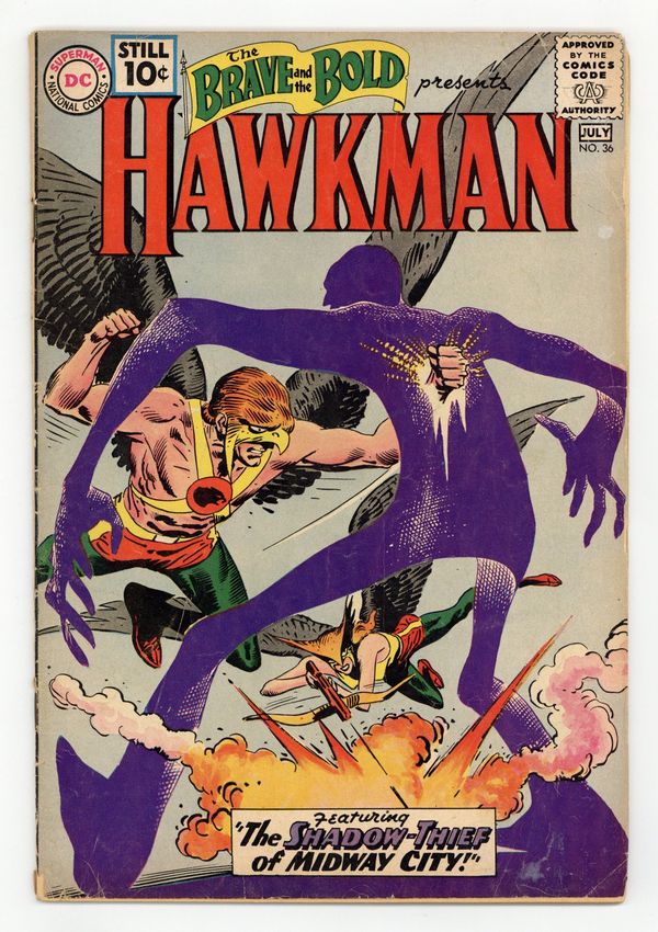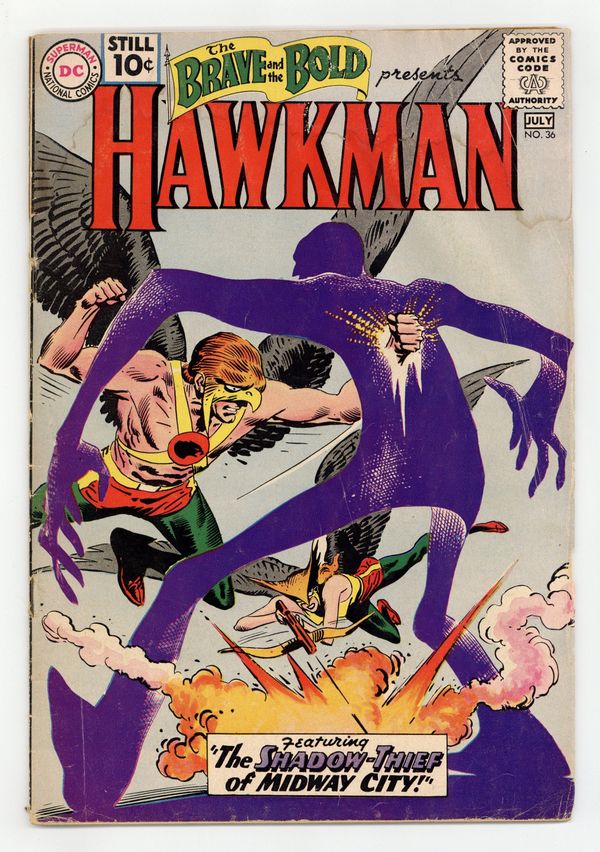 Cover by Joe Kubert. "Strange Spells of the Sorcerer!", script by Gardner Fox, art by Joe Kubert; An amateur sorcerer conjures up mythical beasts to help him commit crimes and battle Hawkman and Hawkgirl. "Shadow-Thief of Midway City!", script by Gardner Fox, art by Joe Kubert; Carl Sands helps an alien from another dimension, who gives him a Dimensiometer which allows him to turn into a living shadow. 36 Pages, Full Color. Cover price $0.10.