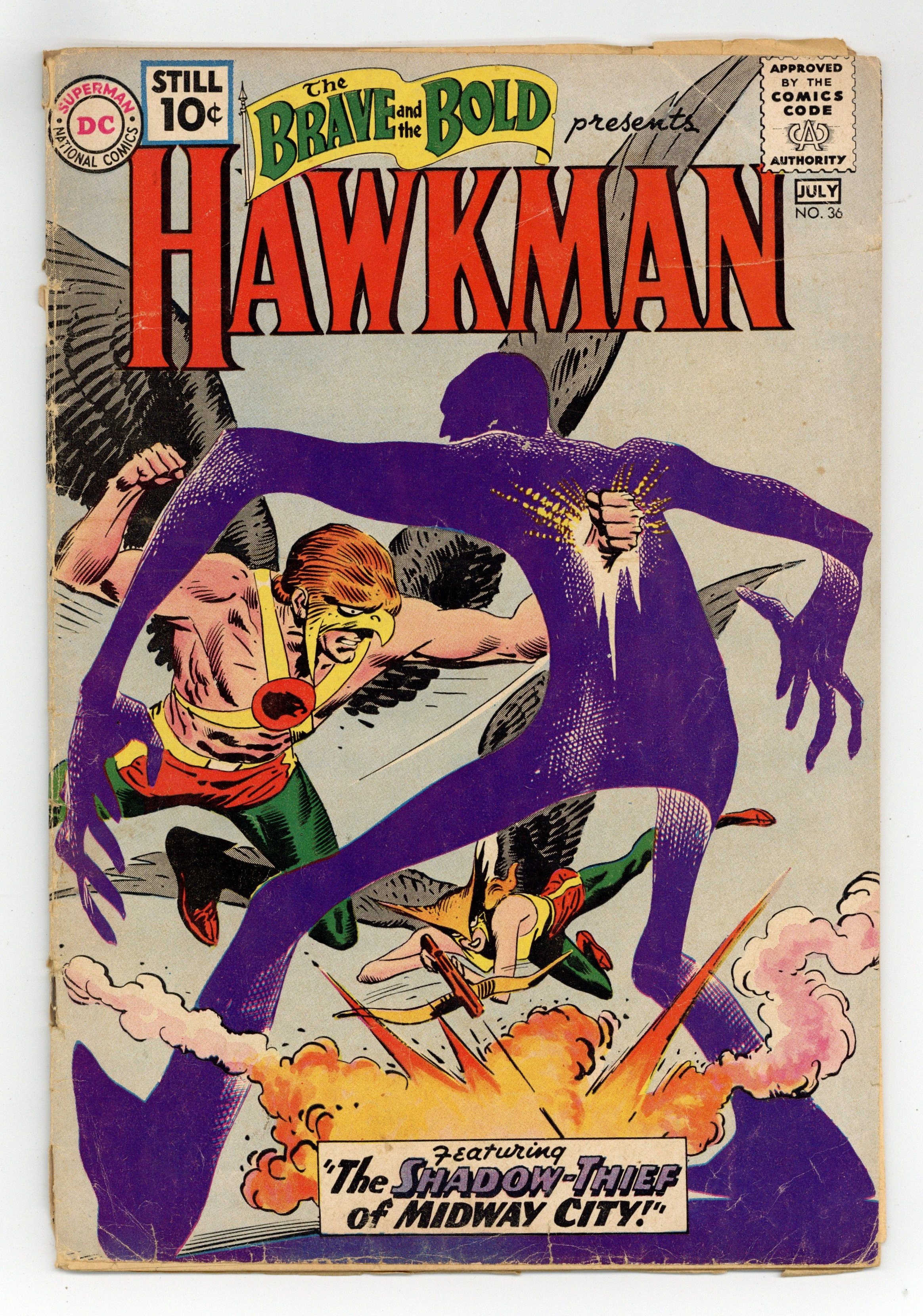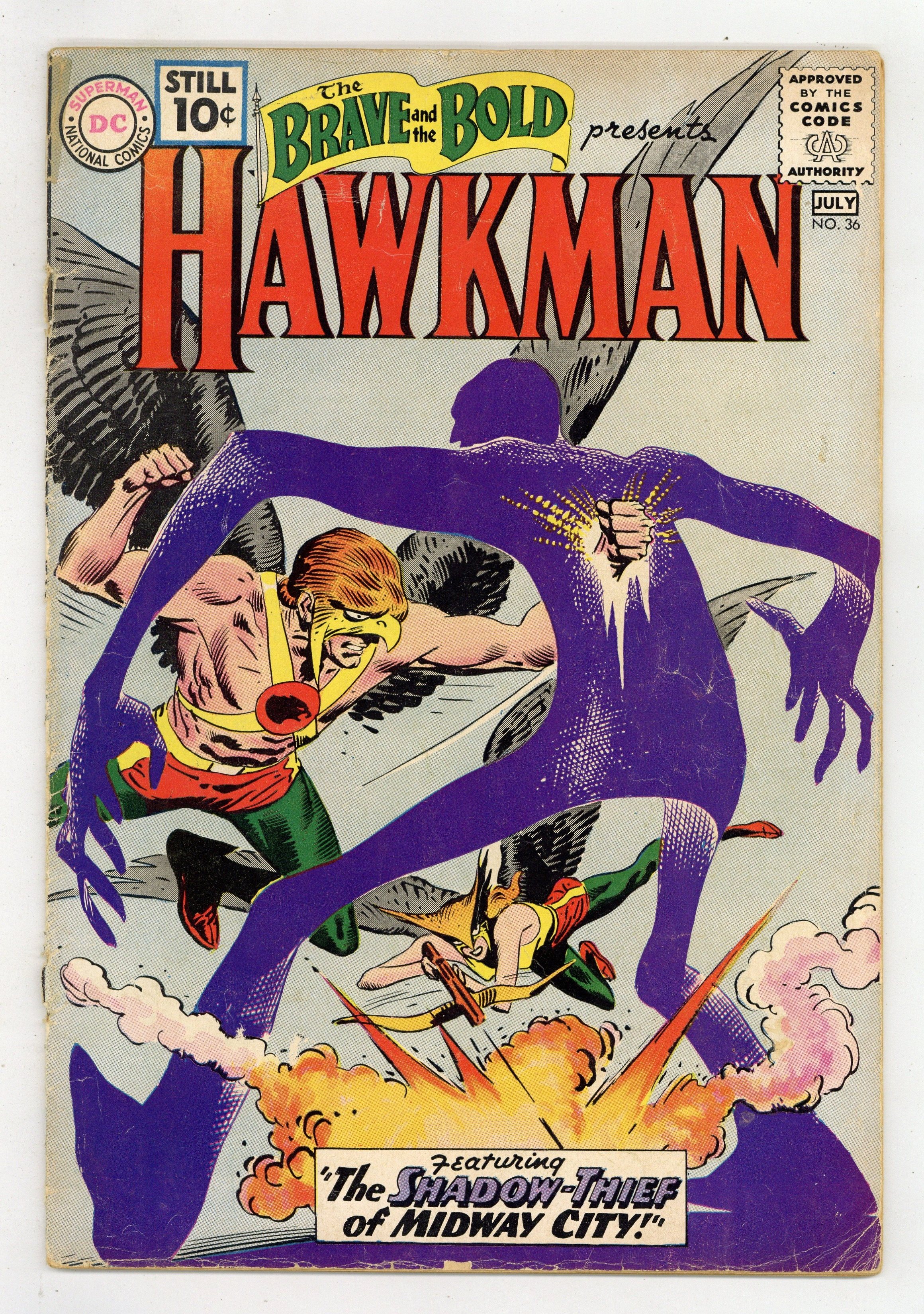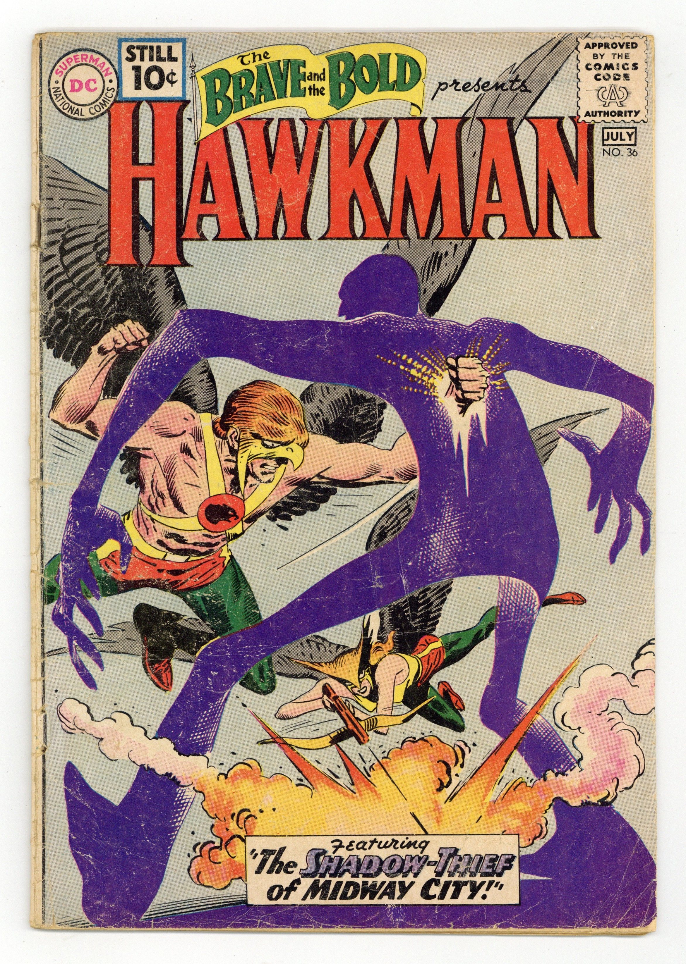 Cover by Joe Kubert. "Strange Spells of the Sorcerer!", script by Gardner Fox, art by Joe Kubert; An amateur sorcerer conjures up mythical beasts to help him commit crimes and battle Hawkman and Hawkgirl. "Shadow-Thief of Midway City!", script by Gardner Fox, art by Joe Kubert; Carl Sands helps an alien from another dimension, who gives him a Dimensiometer which allows him to turn into a living shadow. 36 Pages, Full Color. Cover price $0.10.