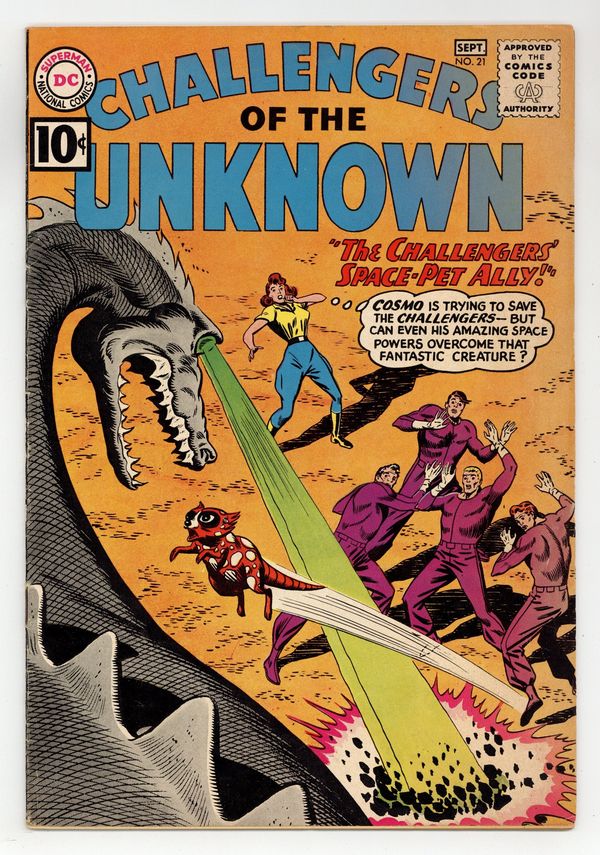 "The Weird World that Didn't Exist." Bad guys hijack equipment that June Robbins and some moviemakers are using to surprise the Challengers. "The Challengers' Space-Pet Ally." Cosmo faces criminal mystic Zardoc, who gets mind-over-matter powers from a meteorite. Art and cover by Bob Brown. Cover price $0.10.