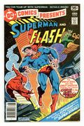 Ends Jan 13 8:52 PM CST Bid History 9 bids Current Bid $76 Your Secret Max Bid If you'd like to bid, please log in or register. Chase to the End of Time! - Written by Martin Pasko. Art and Cover by José Luis García-López and Dan Adkins. Presenting a brand-new series teaming Superman with DC's most sensational super-stars! The warring alien races the Volkir and the Zelkot come to Earth in pursuit of Zelkot Iylar who hopes to travel through time and prevent the aliens' war from ever beginning. The Zelkot threaten to destroy Earth if The Flash does not help Iylar complete his mission. But after The Flash heads off after Iylar, the Volkir convince Superman to stop Iylar or he will change history and Krypton will explode eons earlier than it did. Continues next issue. Characters in this issue: Superman [Clark Kent; Kal-El]; The Flash [Barry Allen]; Islayn (villain, a Volkir); Aylem (villain, a Zelkot); Iylar; Reverse-Flash [Professor Zoom; Eobard Thawne] (cameo). Plus: Aquaman and Aqualad in 1-page Hostess Twinkies ad "Imperiled Sub" with art by Curt Swan and Vince Colletta. 32 pages, full color. Cover price $0.35.
