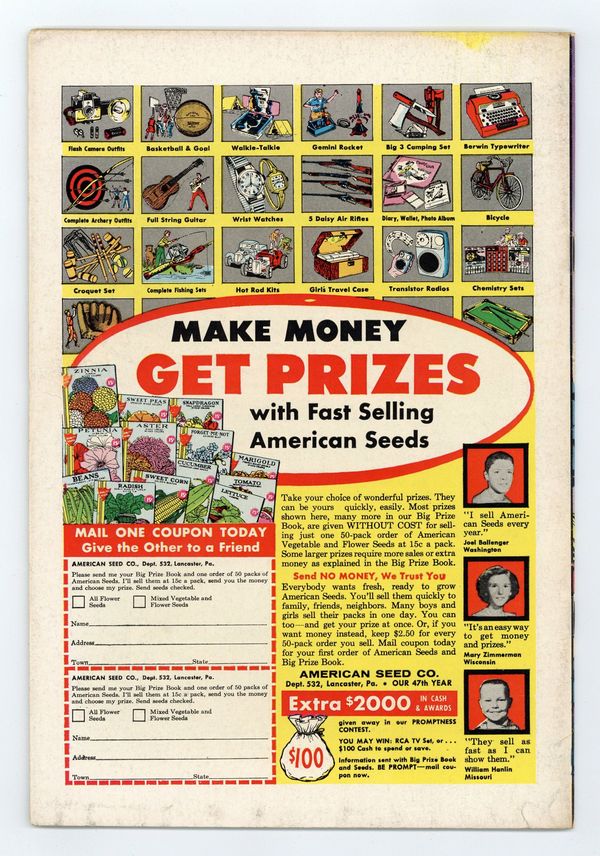 $21.50Written by Gardner Fox. Art by Sheldon Moldoff (as ghost for Bob Kane) and Joe Giella. Cover by Carmine Infantino and Joe Giella. Batman's Power-Packed Punch!; A chemical spills on Bruce Wayne, giving Batman super strength in his right arm; Batman punches a wrecking ball away; a crook deduces that Bruce and Batman are the same person, but doesnt tell anyone. Written by Gardner Fox. Art by Carmine Infantino and Sid Greene. Case of the Curious Compass! starring Elongated Man. The Greatest Robberies of All Time! article by Julius Schwartz, art by Morris Waldinger and Tom Nicolosi. Warden Willis humor page by Henry Boltinoff. Letter to the editor from comics writer Mike Friedrich. Are You a Silent Witness? public service announcement by Jack Schiff, art by Sheldon Moldoff. 36 pages, full color. $0.12. Cover price $0.12.