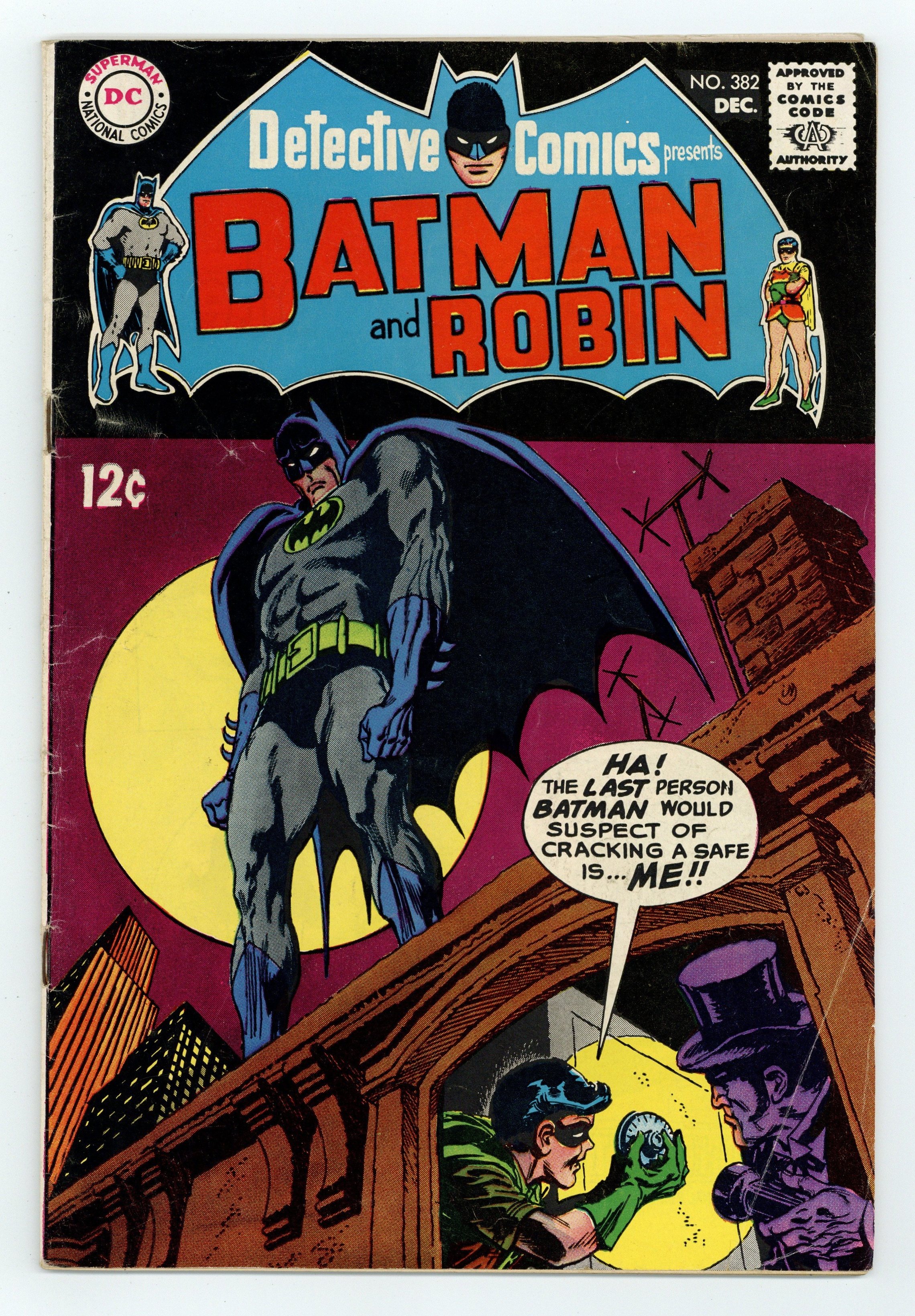 Tags: Batman$19.00Written by Frank Robbins. Art by Bob Brown and Joe Giella. Cover by Irv Novick and Carmine Infantino. Riddle of the Robbin' Robin!; Batman and Robin prevent a robbery by the Smokescreen Mob, then track them to their hideout. Written by Gardner Fox. Art by Sid Greene. The Wishing Well Wonder!; Elongated Man stops a fur robbery in Fairview City; he sees Billy Warner, who claims a magic coin will do as he says. 36 pages, full color. $0.12. Cover price $0.12.