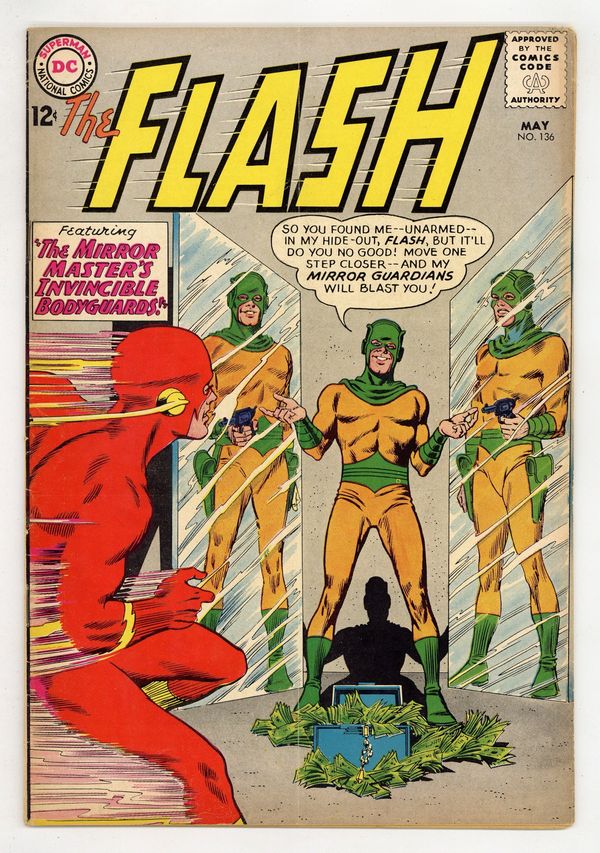 Cover pencils by Carmine Infantino, inks by Murphy Anderson. The Mirror Master's Invincible Bodyguards!, script by John Broome, pencils by Carmine Infantino, inks by Joe Giella; Mirror Master plans some spectacular crimes after he busts out of prison so he can rise up the prison newspaper's "Most Successful Criminal Poll." Barry Allen--You're the Flash!--and I Can Prove It!, script by John Broome, pencils by Carmine Infantino, inks by Joe Giella; A criminal uses a post-hypnotic suggestion on the Flash, resulting in him almost revealing his secret identity. Strange Sports Stories ad. Letter to the editor from fan writer Larry Herndon. Metal Men ad. 36 Pages, Full Color. Cover price $0.12.