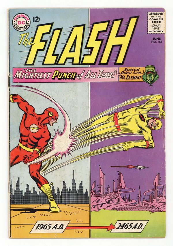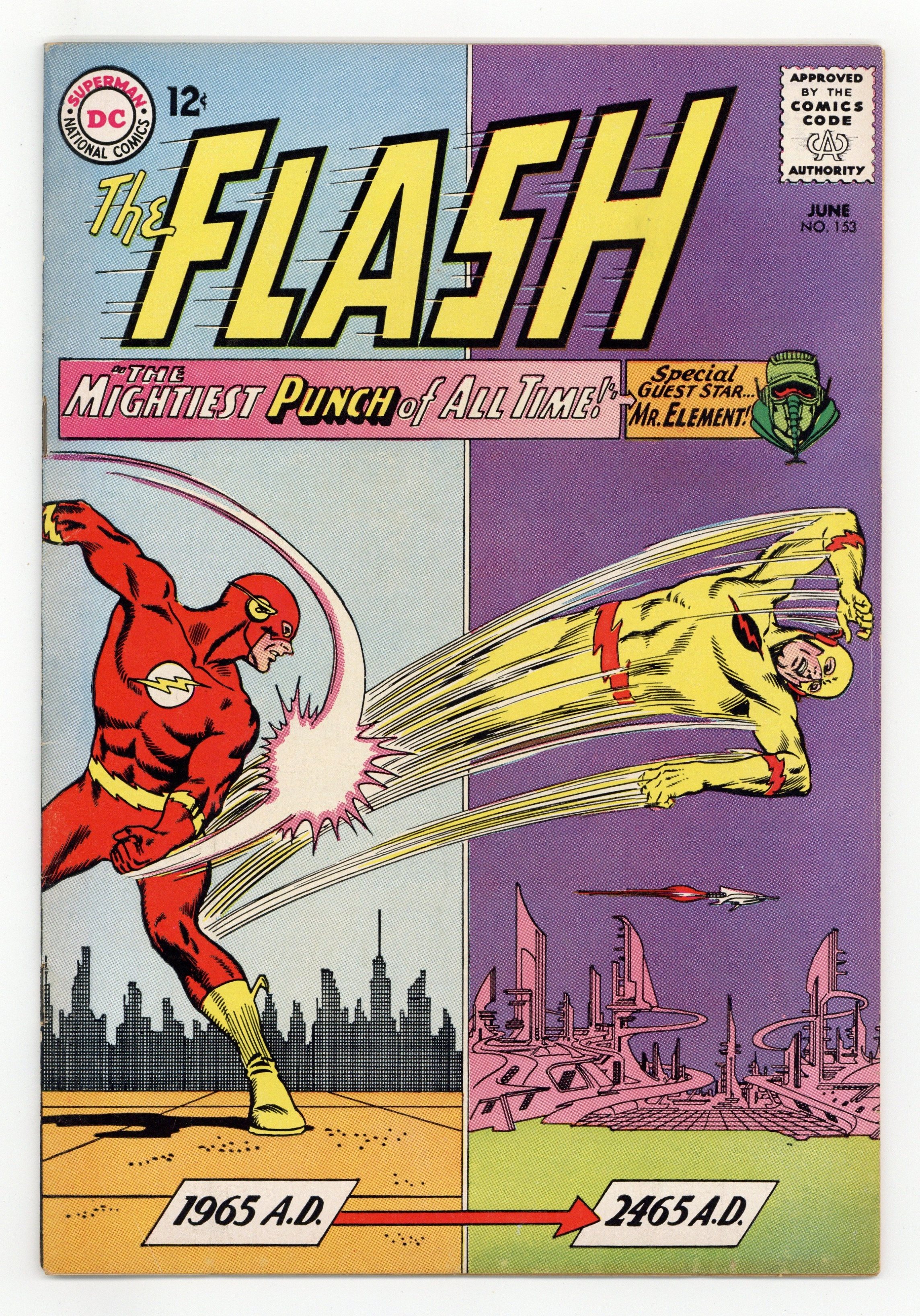 Cover pencils by Carmine Infantino, inks by Murphy Anderson. Happy Hobby Time! public service announcement starring Superboy, script by Jack Schiff, art by Win Mortimer. The Mightiest Punch of All Time, script by John Broome, pencils by Carmine Infantino, inks by Joe Giella; Professor Zoom fools prison officials and passes an electronic psychological examination, ensuring his release; Zoom brings Mr. Element to his hideout to eliminate Flash. G.I. Joe club ad. Monster Koach ad with cartoon version of Herman Munster. Palisades Amusement Park ad with Superman. Monogram ad featuring Caricature kits. 80 pg. Giant Superman ad. Letter from comics artist Doug Potter. 36 Pages, Full Color. Cover price $0.12.