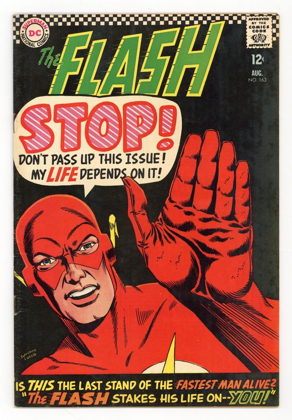Cover pencils by Carmine Infantino, inks by Joe Giella. The Flash Stakes His Life-- On-- YOU!, script by John Broome, pencils by Carmine Infantino, inks by Joe Giella; Ben Haddon invents a device that makes everyone in Central City forget about the Flash, except for one homeless girl that Flash helped earlier that day. The Policeman Is Your Friend! public service announcement, script by Jack Schiff. Caps Hobby Hints strip by Henry Boltinoff. The Day Magic Exposed Flash's Secret Identity!, script by John Broome, pencils by Carmine Infantino, inks by Joe Giella; Flash learns that Abra Kadabra comes from the future when a 64th Century Policeman come to the past to return Abra Kadabra to jail in his own time. G.I. Joe Club ad. 36 Pages, Full Color.