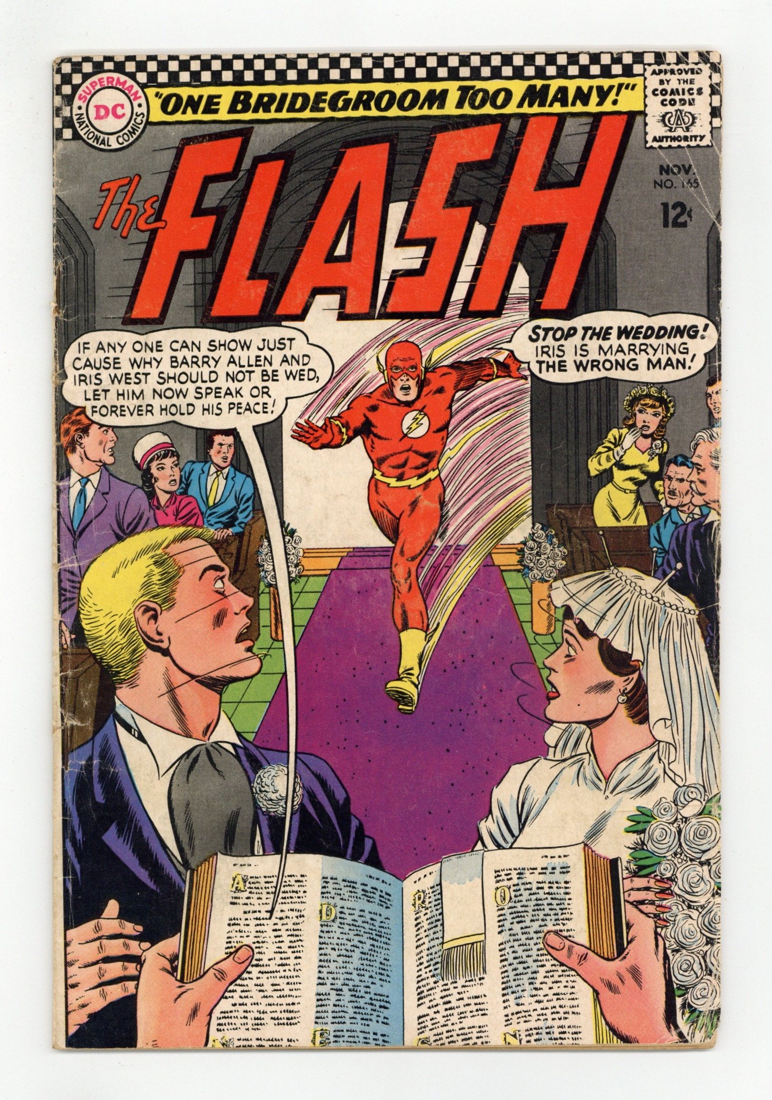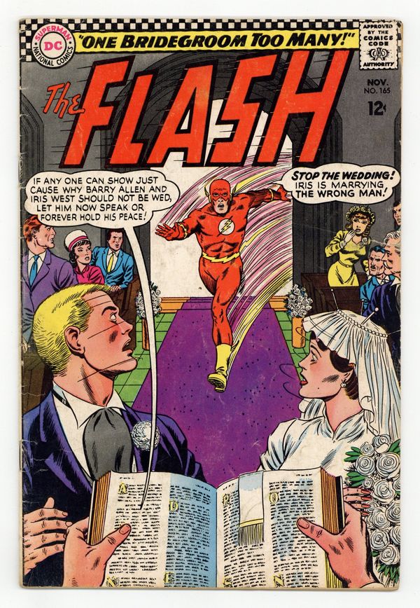 Tags: Flash$38.50Cover art by Murphy Anderson. One Bridegroom Too Many!, script by John Broome, pencils by Carmine Infantino, inks by Joe Giella; Reverse Flash impersonates Barry Allen with the intent of marrying Iris West; luckily, Barry marries Iris in the end; Craig "Mr. Silver Age" Schutt has called this the greatest Silver Age wedding of all time. Lost--A Free Education! public service announcement starring Binky, script by Jack Schiff, art by Bob Oksner. Caps Hobby Hints strip by Henry Boltinoff. 80 pg. Giant Justice League ad. Batman Magic Photo Kit ad. Plastic Man ad. Letter from noted letter hack Guy H. Lillian III. Caps Hobby Hints strip by Henry Boltinoff. G.I. Joe Club ad. Back cover model kit ad featuring Captain Kidd, The Frog, Forgotten Prisoner of Castelmare, and The Green Beret. 36 Pages, Full Color. Cover price $0.12.
