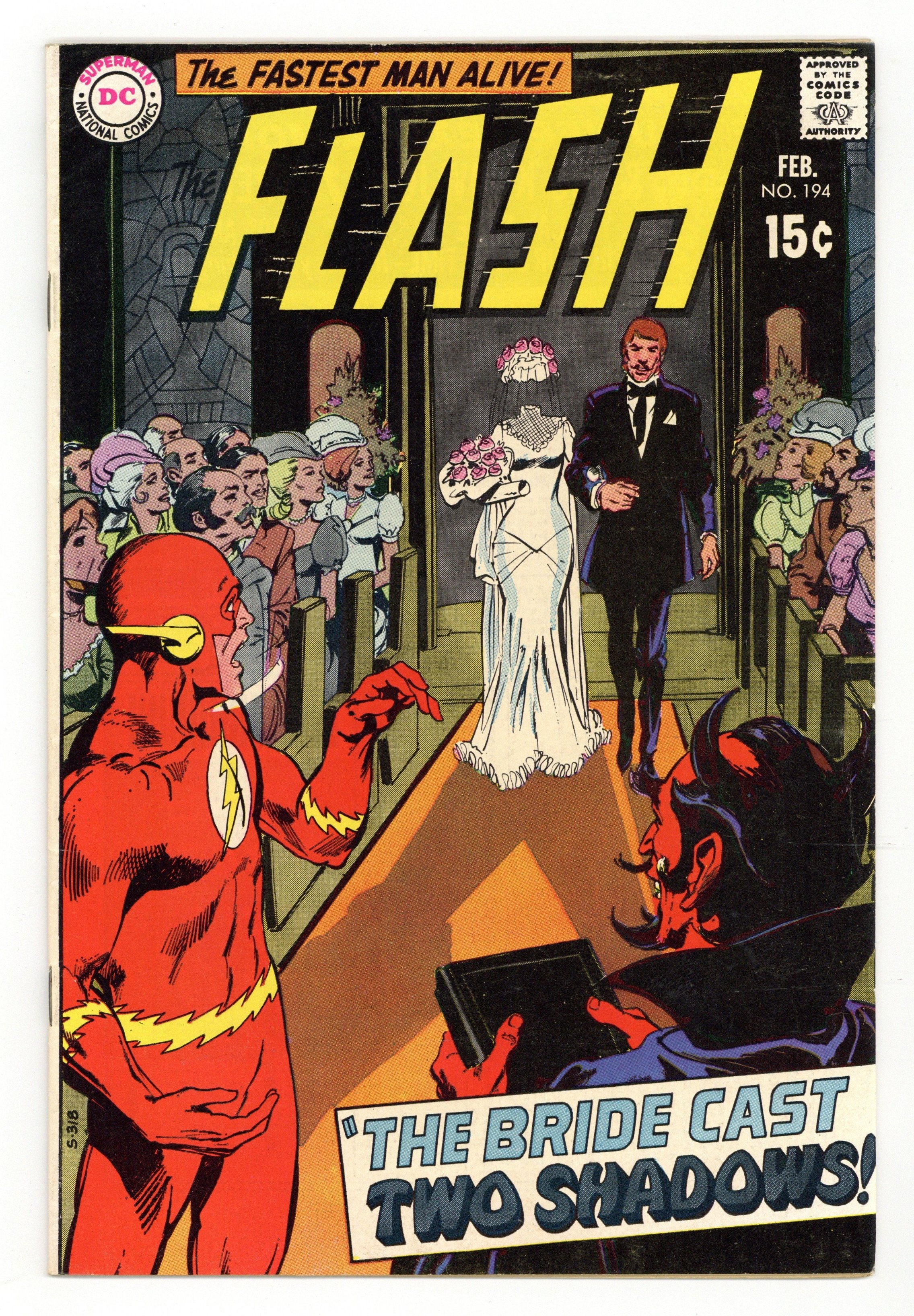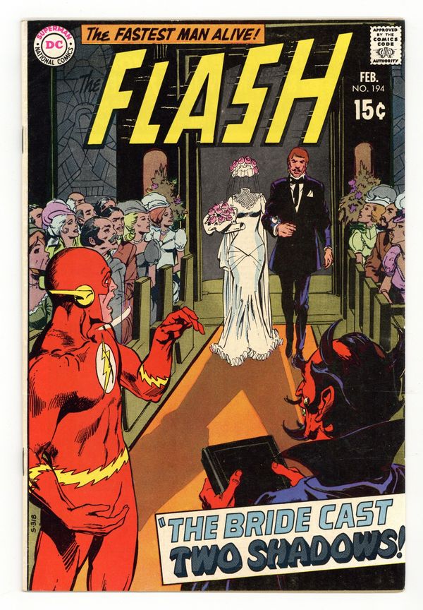 Tags: Flash$22.00Cover art by Neal Adams. The Bride Cast Two Shadows, script by John Broome, pencils by Ross Andru, inks by Mike Esposito; Looking into the eyes of a strange woman gives Flash visions; he assumes another identity, battles demonic creatures, and gets married. The Man Who Televised Time! starring Professor Wonderwitz and Paul Mason, script by Gardner Fox, pencils by Carmine Infantino, inks by Joe Giella. Peter, Paul and Marys Top Hit Song Book ad. House of Mystery ad. 36 Pages, Full Color. Cover price $0.12.