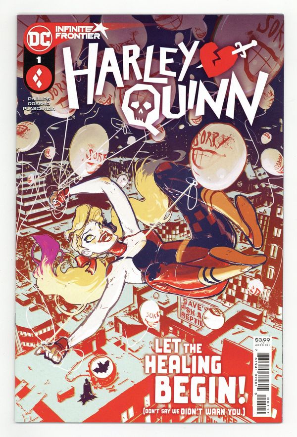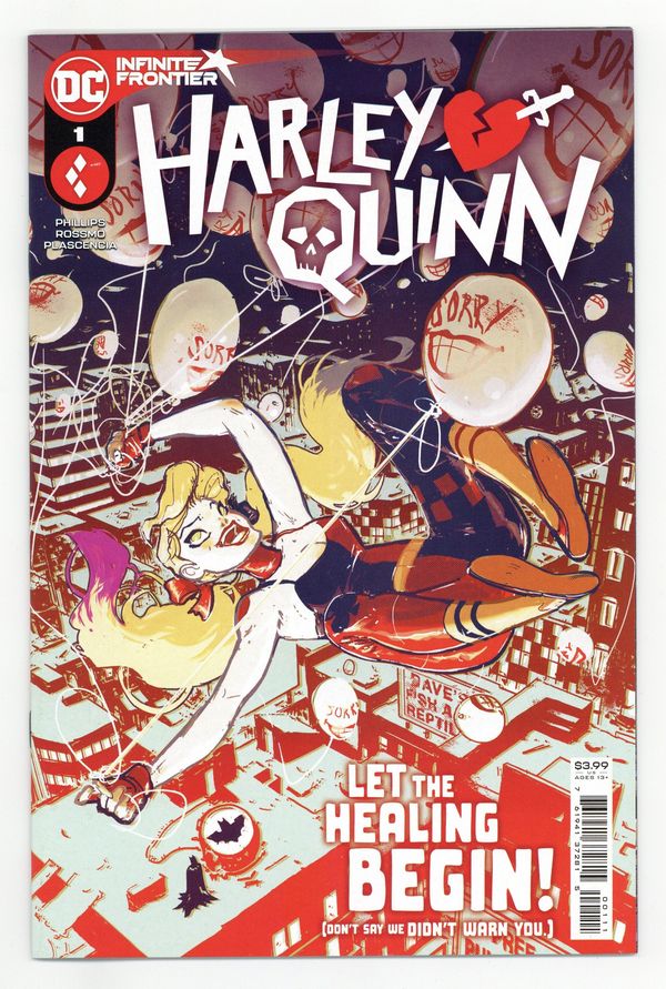 Infinite Frontier Tie-In - Written by Stephanie Phillips. Art and Cover by Riley Rossmo. Ahem! You better read this closely, cause weve got a red-hot relaunch on our hands here—and I should know! Harley Quinn here to let everyone know that I got a brand-new monthly series here with a brand-new status quo. Im coming back to Gotham City to make up for the sins of my past, and help the city recover from The Joker War! But theres no welcoming committee waiting for me, your favorite Maid of Mischief! And between you and me, some real creeps are working to keep the city broken. We cant let that happen, can we? Rising-star writer Stephanie Phillips, my new partner in crime, takes me into a bold new era with her partner in artistic crime Riley Rossmo, who I gotta say designed a real nice new costume for me. Youre not gonna wanna miss this one, folks! 32 pages, full color. Rated T+ Cover price $3.99.