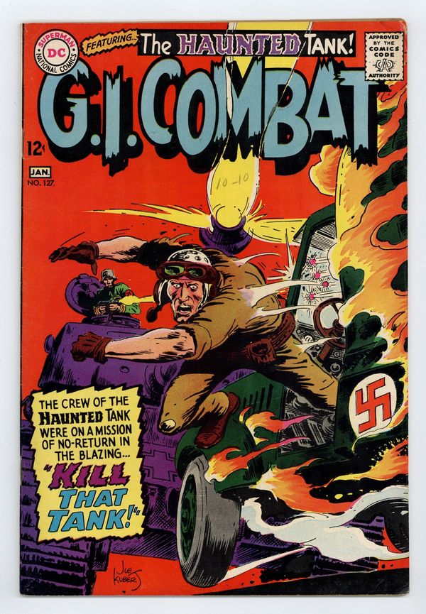 Cover by Joe Kubert. Written by Robert Kanigher and Howard Liss. Art by Irv Novick and Jack Abel. The crew of the Haunted Tank was on a mission of no return in the blazing..."Mission -- Sudden Death!" by Robert Kanigher and Irv Novick. Mlle. Marie appearance. Plus: "The Last Chance for Hobie!" by Howard Liss and Jack Abel. 36 Pages, Full Color. Cover price $0.12.