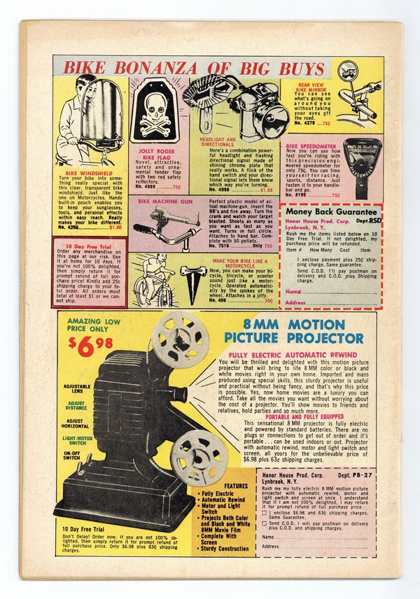 Cover pencils by Gil Kane, inks by Joe Giella. The Duel of the Super-Heroes!, script by John Broome, pencils by Gil Kane, inks by Joe Giella; When Green Lantern exceeds the speed of light he crashes on the extra-dimensional planet of Spectar; The aliens there brainwash him and send him to Earth to capture the Flash; 1st Green Lantern and Flash team up; They reveal their identities to each other for the first time. 36 pgs. $0.12. Cover price $0.12.