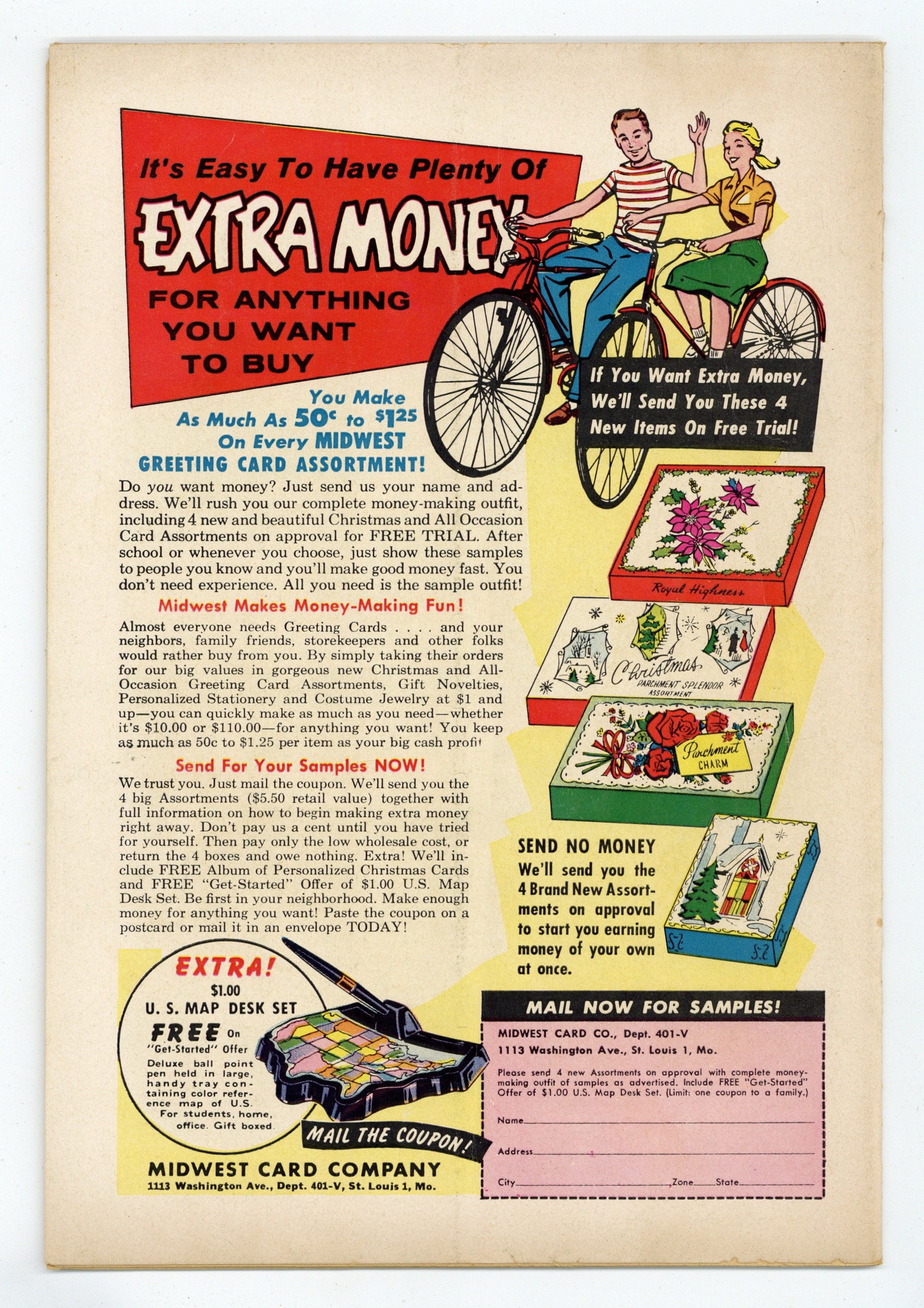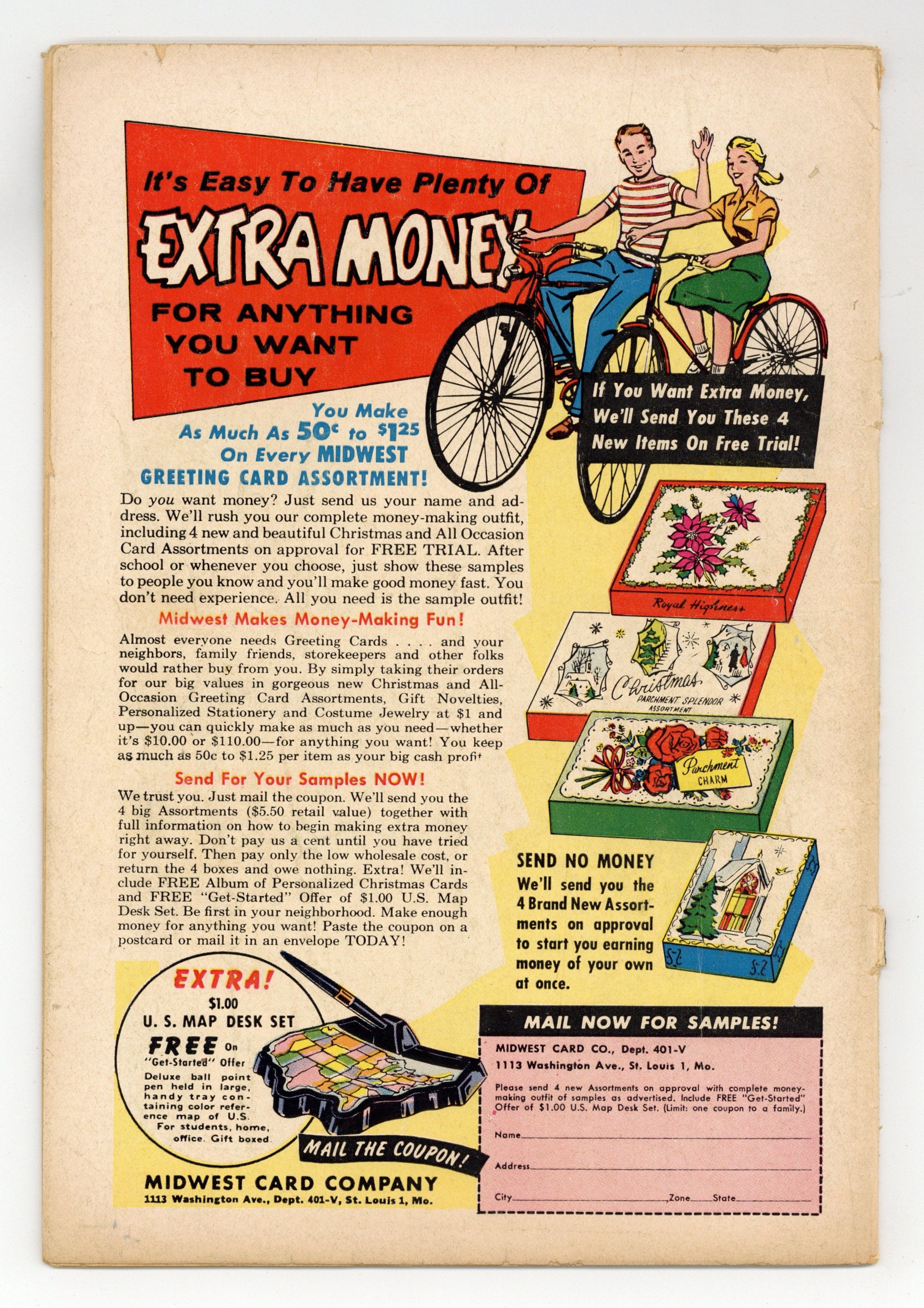 - 5 1/2" Cumulative spine split. Centerfold detached at one staple. Residue.