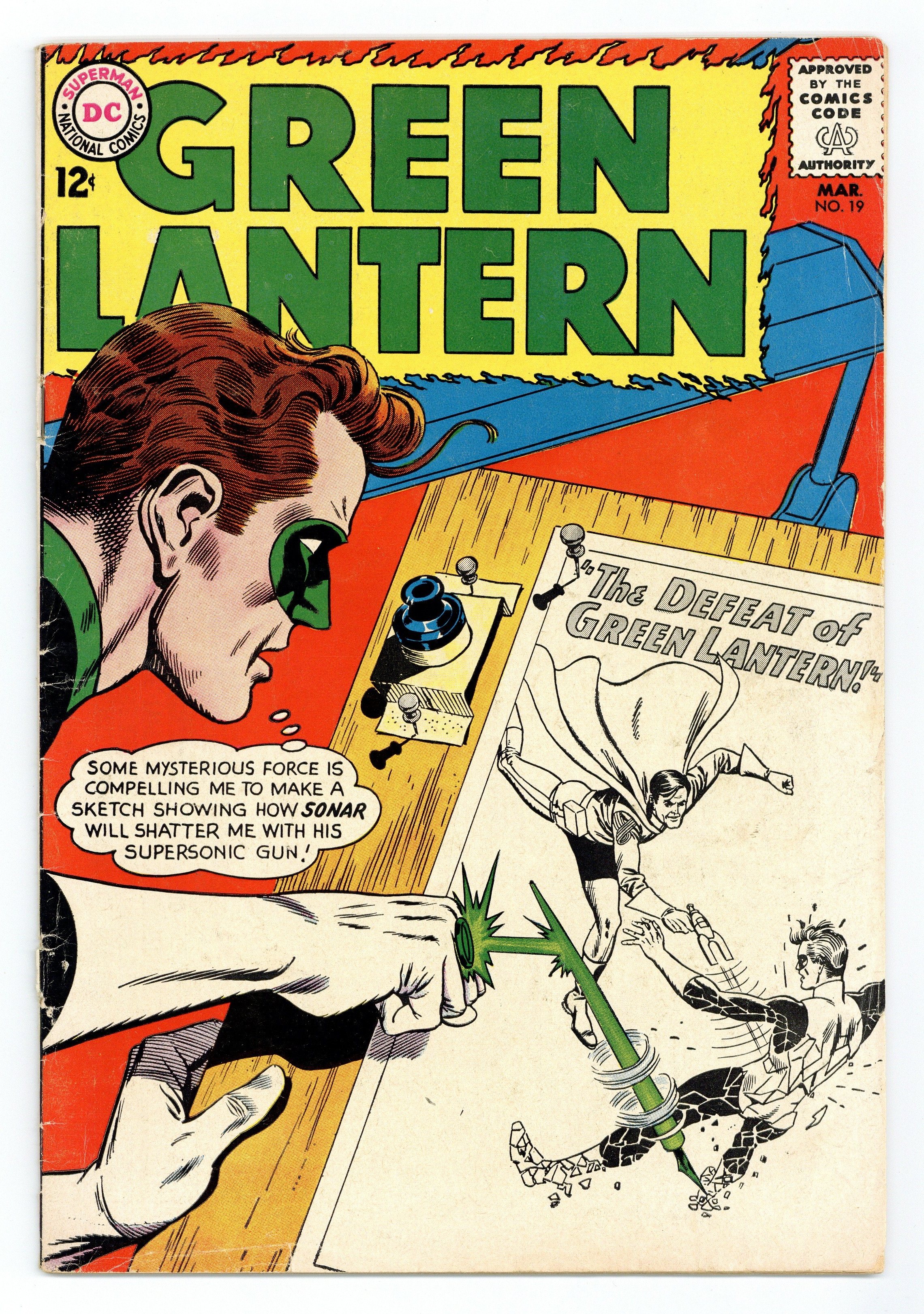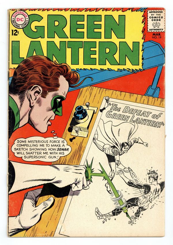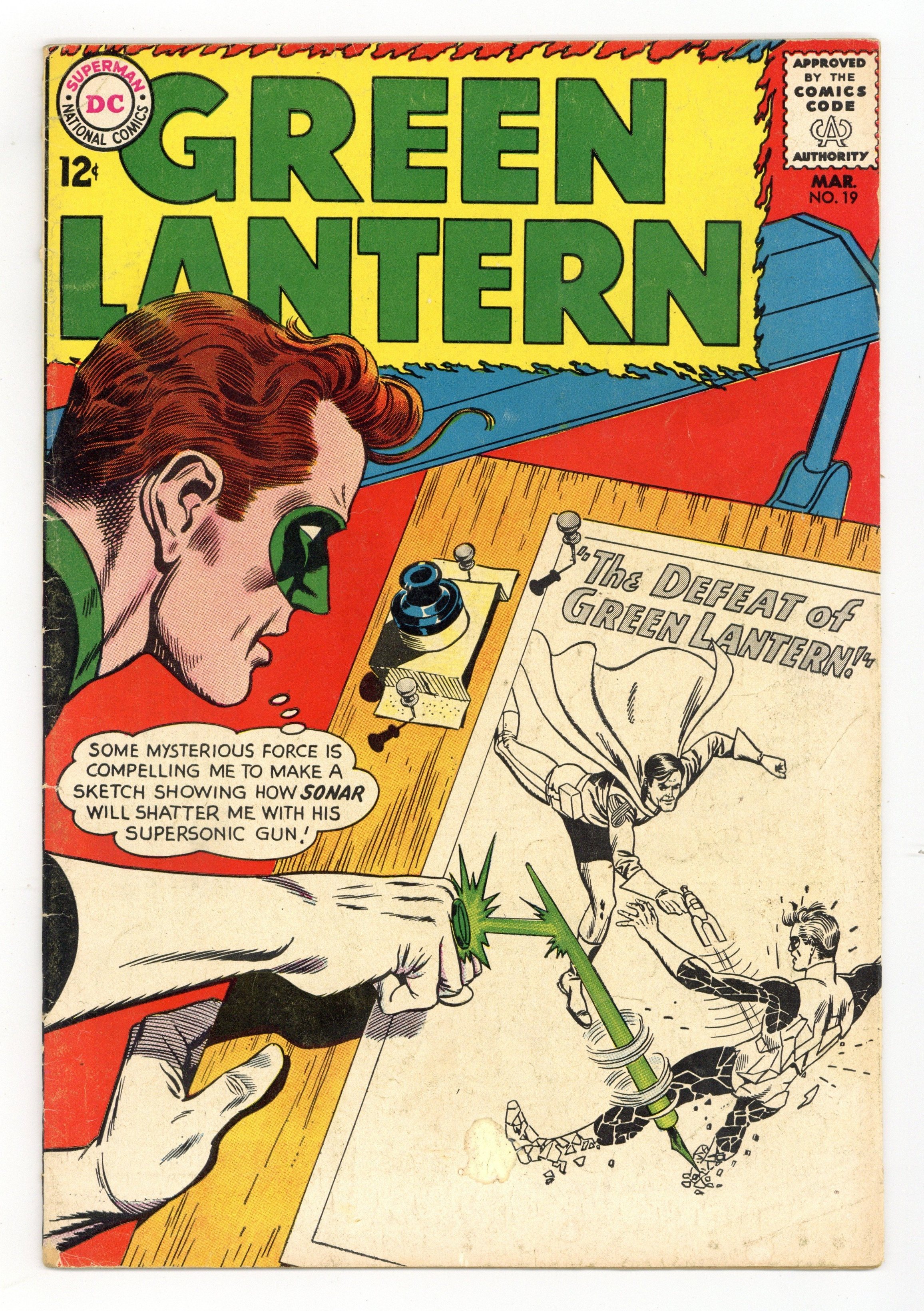 Cover pencils by Gil Kane, inks by Murphy Anderson. The Defeat of Green Lantern, script by John Broome, pencils by Gil Kane, inks by Joe Giella; The country of Granaco requests Green Lantern's assistance in preventing Sonar's invasion. Trail of the Horse & Buggy Bandits, script by John Broome, pencils by Gil Kane, inks by Joe Giella; Green Lantern stops some criminals who use a horse and buggy to commit their crimes. 36 pgs. $0.12. Cover price $0.12.