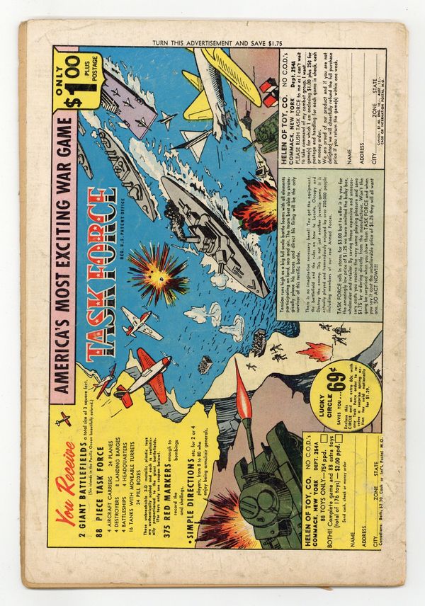First appearance of Black Hand. Cover pencils by Gil Kane, inks by Gil Kane and Murphy Anderson. Half A Green Lantern Is Better Than None!, script by John Broome, pencils by Gil Kane, inks by Sid Greene; Black Hand has created a device to store Green Lanterns ring energy and tries to use that energy to imprison Green Lantern in another dimension. This World Is Mine starring the Justice League, script by Gardner Fox, pencils by Gil Kane, inks by Sid Greene. 36 pgs. $0.12. Cover price $0.12.