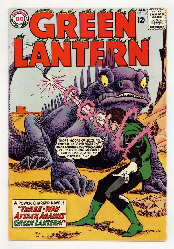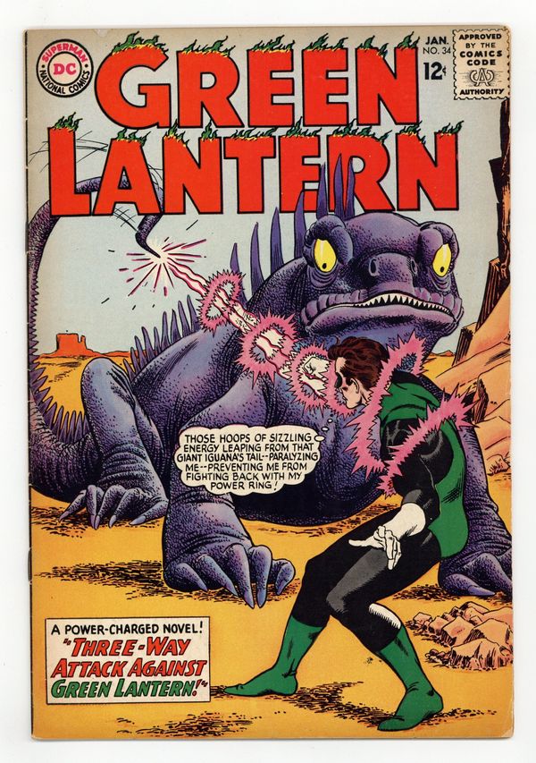 Tags: Green Lantern$24.50Cover pencils by Gil Kane, inks by Murphy Anderson. The Three-Way Attack on Green Lantern, script by Gardner Fox, pencils by Gil Kane, inks by Sid Greene; Hector Hammond creates an energy duplicate of a Guardian to fight Hal Jordan. 36 pgs. $0.12. Cover price $0.12.