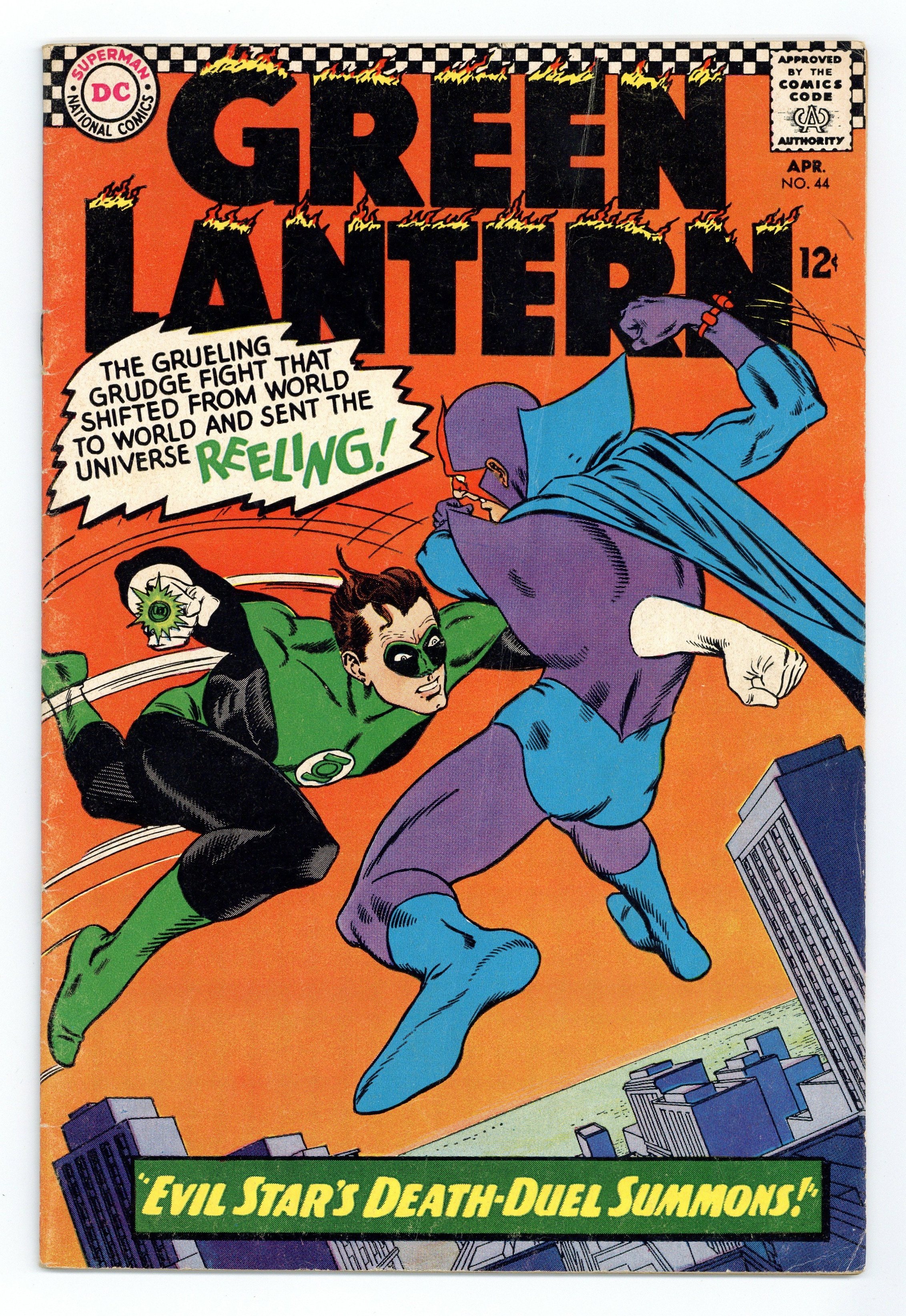 Tags: Green Lantern$16.00Cover pencils by Gil Kane, inks by Murphy Anderson. Evil Star's Death-Duel Summons, script by Gardner Fox, pencils by Gil Kane, inks by Sid Greene; Evil Star escapes from the Guardians and challenges Hal to a duel. Saga of the Millionaire Schemer!, script by John Broome, pencils by Gil Kane, inks by Sid Greene; Uncle Titus tries to prove Jim is Green Lantern. Letter from Mike Friedrich. Letter to the editor from comic writer Mike Friedrich. 32 pgs. $0.12. Cover price $0.12.