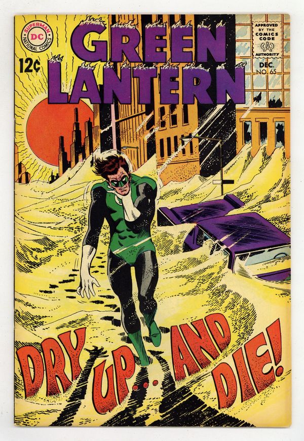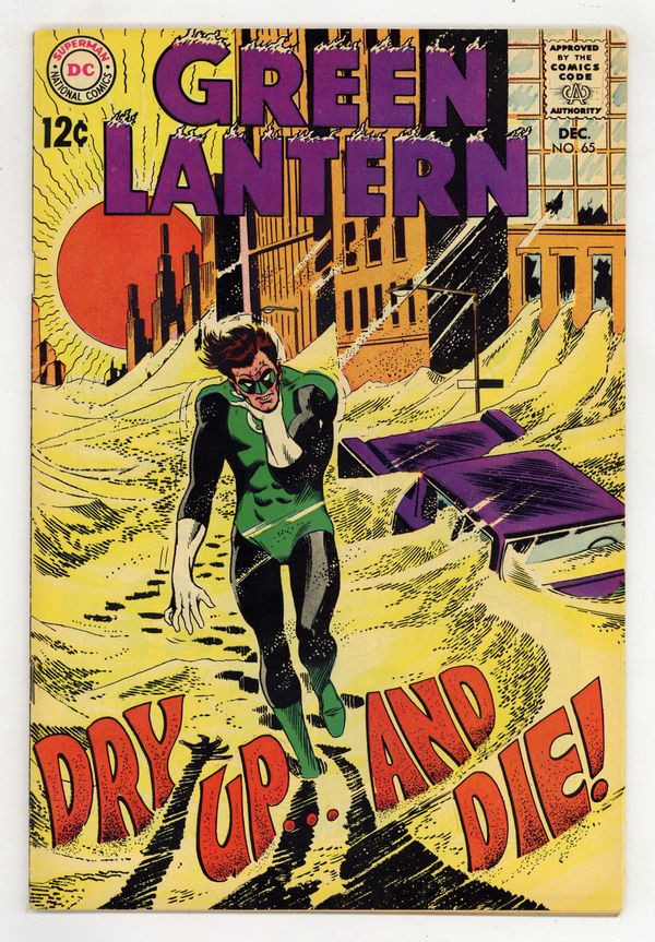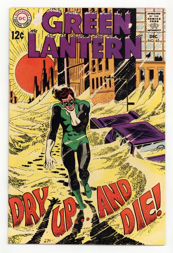 Tags: Green Lantern$17.25Cover pencils by Mike Sekowsky, inks by Joe Giella. Dry Up-- And Die!, script by Gardner Fox, pencils by Mike Sekowsky, inks by Joe Giella; When Dr. Emerson discovers an alien menace that will absorb all the water on Earth, he mentally reaches out to Green Lantern, trying to control his mind and bring him to solve the problem; When that doesn't work, he creates a duplicate of his former villainous alter-ago, Dr. Polaris, but cannot control that either, now leaving Green Lantern with two major problems. Captain Action and Action Boy Meet Dr. Evil toy ad. Superbaby ad. 36 pgs., full color. $0.12. Cover price $0.12.