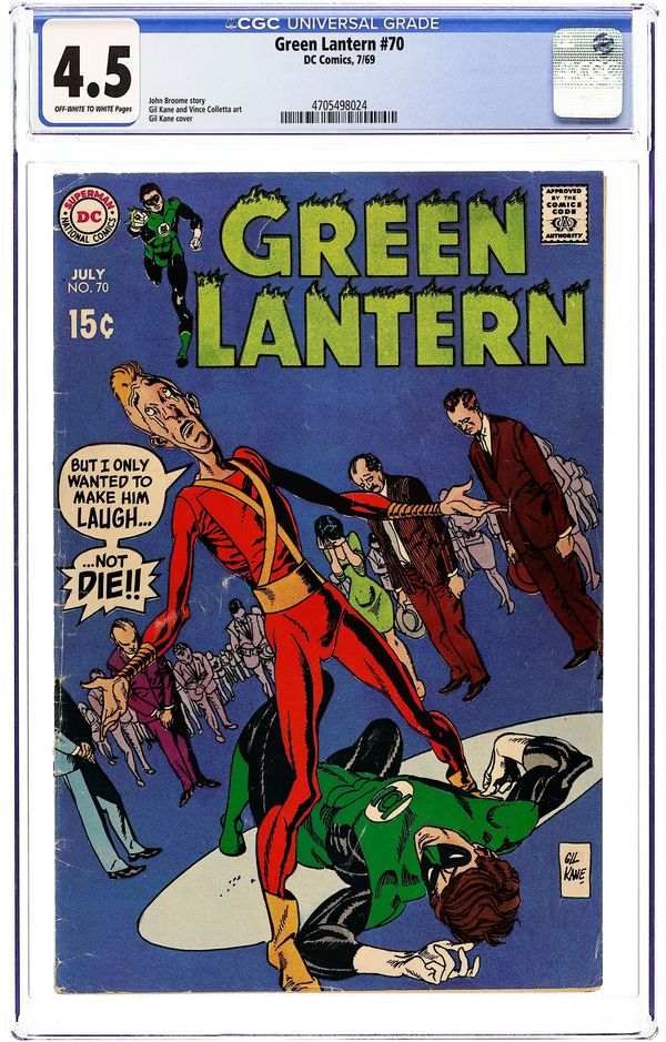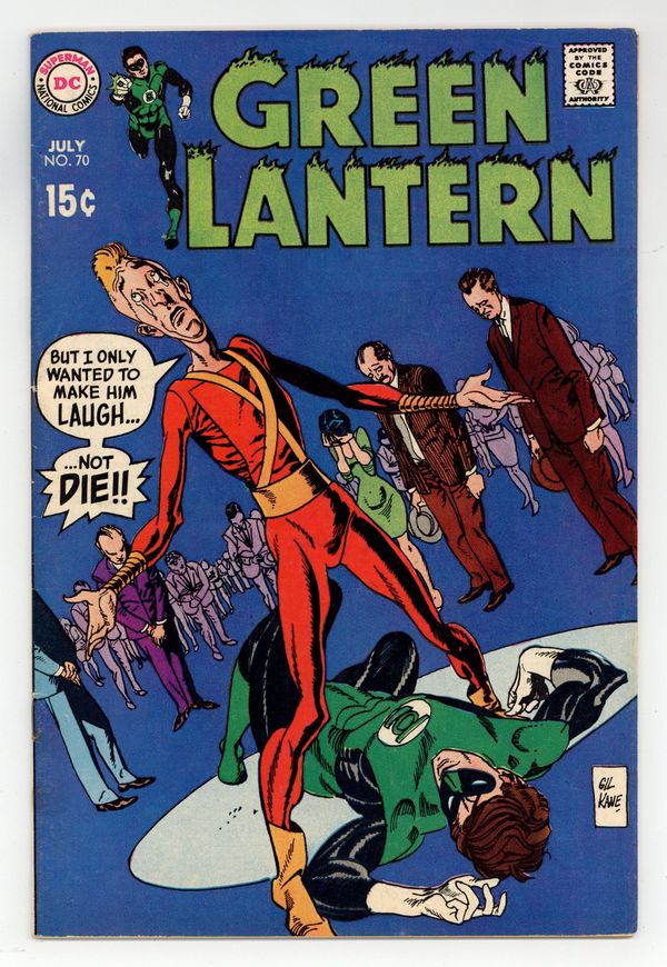 Tags: Green Lantern$16.50First 15-cent cover price. Cover by Gil Kane. A Funny Thing Happened on the Way to Earth!, script by John Broome, pencils by Gil Kane, inks by Vince Colletta; A faulty, discarded toy robot from the planet Ghyra follows Green Lantern to Earth, causing plenty of havoc, especially when it is used by a gang of crooks; Meanwhile, Hal Jordan starts on a new career as a salesman for the Merlin Toy Company. Batman ad. 36 pgs., full color. $0.15. Cover price $0.15.