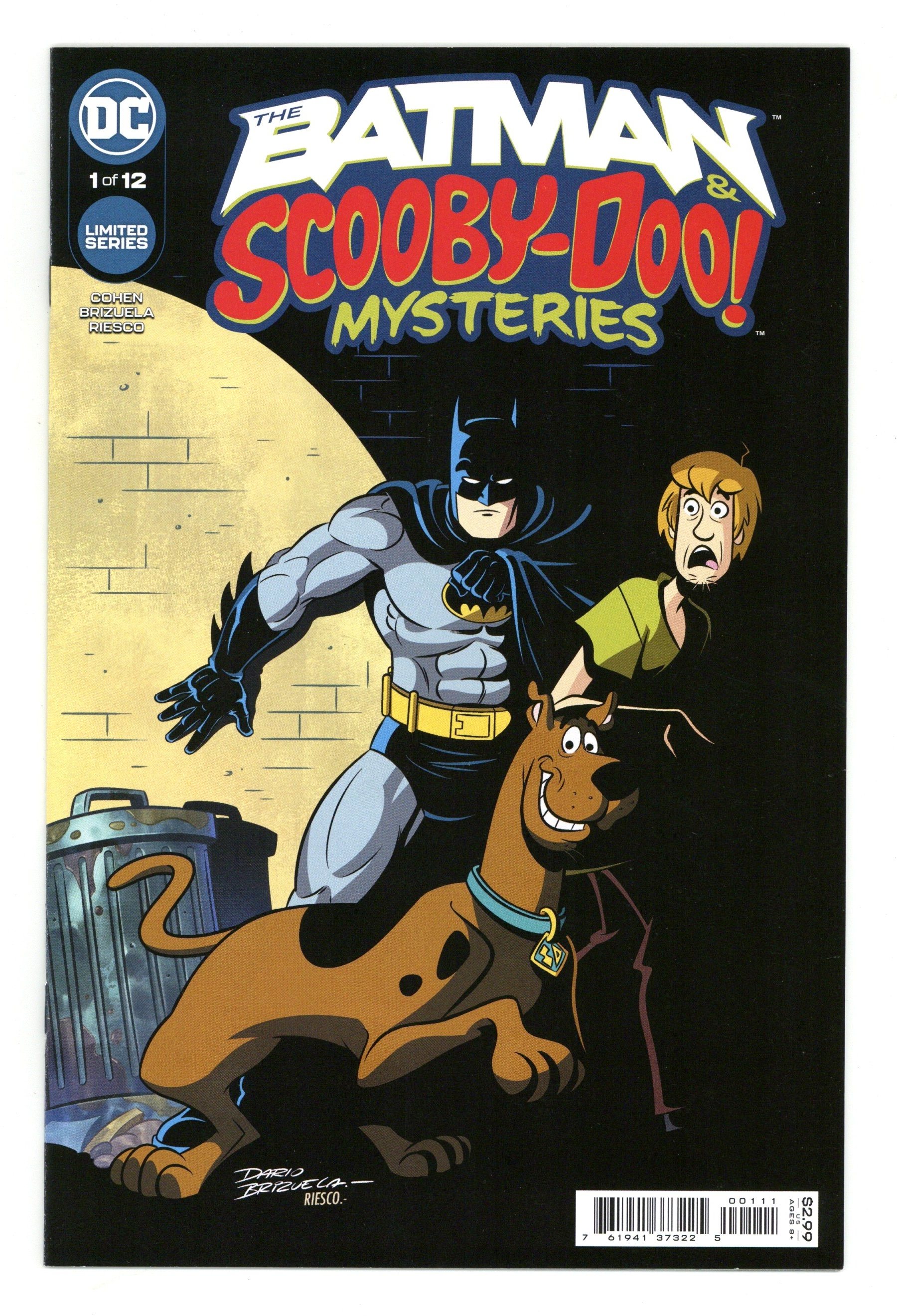 Written by Ivan Cohen. Art and Cover by Dario Brizuela. Its an all-new, all-ages series that teams the Dark Knight with Scooby-Doo and the sleuths of Mystery Inc.! When Batman discovers his original purple gloves have gone missing, Velma, Shaggy, and Scooby-Doo travel back in time to Batmans Year One era to solve the case! Will this Glove Story have a happy ending? 32 pages, full color. Cover price $2.99.