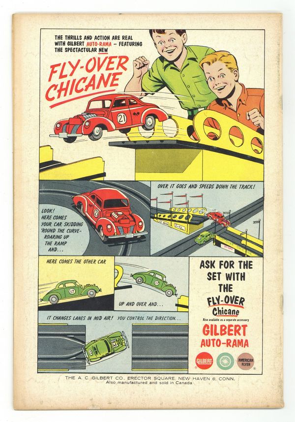 $14.50Cover art by Bob Brown. "The Threat of the Horrible Hex," script by Arnold Drake, art by Mort Meskin; Mark and Elsa travel to central Pennsylvania to help a young woman escape from a curse on her family from the days of the colonial witch trials. Ad for Aquaman and Hawkman. Superman ad. Batman and Robin ad. 2/3-page The Great Houdini bio, art by Henry Boltinoff. "Hideout on Fear Island," script by Bob Haney, art by Alex Toth; Professor Bennett is accused of using a rapid-grow plant experiment by a small South-American country and destroying a village. Doom Patrol ad. 36 Pages, Full Color. Cover price $0.12.