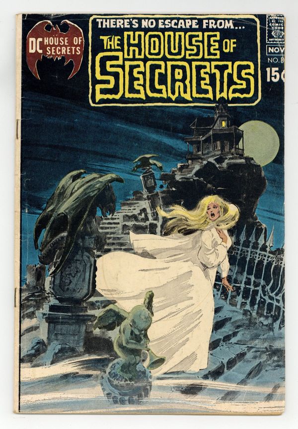 $125.00Painted cover art by Neal Adams. "The Morning Ghost," script by Marv Wolfman, pencils by Dick Dillin, inks by Frank Giacoia; A man meets a woman on the run from the ghosts of her dead family who want her to join them; He tries to convince her there are no ghosts by bringing her back to the house where they died in a fire, but she reveals to him that there were no survivors and she too is a ghost. "Eyesore!", script by Gerry Conway, art by Bill Draut (as Wild Bill); A blind store owner begins to suspect an acquaintance of wanting to kill him and take over the business, so when the man tells him that he's got something for him in the closet, the blind man sneaks up behind him and kills him by striking him with his cane; The blind man hears sounds like something moving and thinks perhaps the man isn't dead and is coming for revenge. 36 Pages, Full Color. Cover price $0.15.