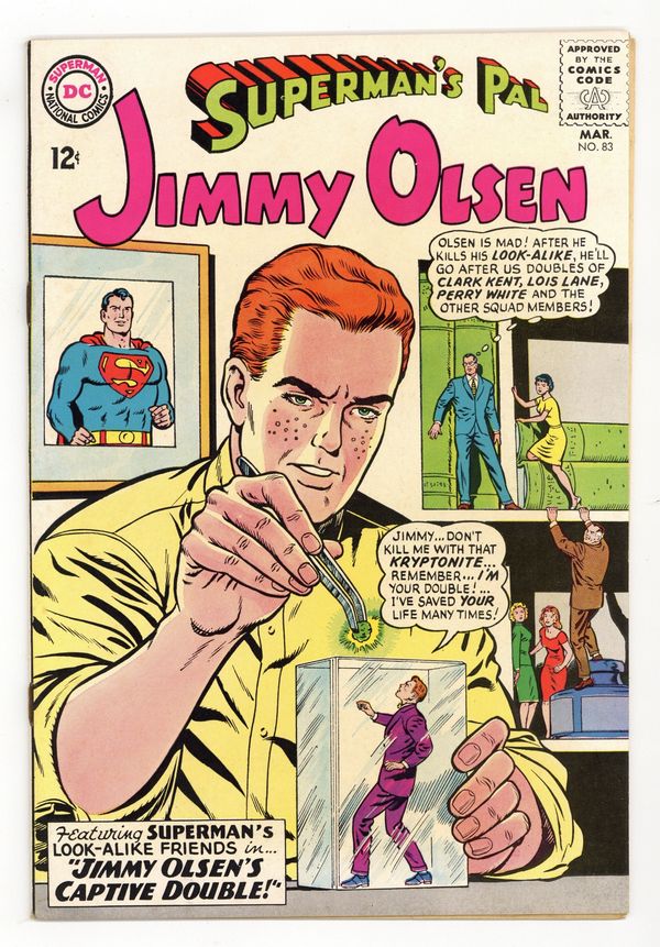 Cover pencils by Curt Swan, inks by George Klein. The Nostradamus of Metropolis!, script by Leo Dorfman, pencils by John Forte, inks by George Klein; Legendary prophet Nostradamus appears in the twentieth century and begins making chillingly accurate predictions. Peg humor page by Henry Boltinoff. Friends Across the Seas public service announcement, script by Jack Schiff, art by Sheldon Moldoff. The Great Miss Universe Contest!, script by Sam Rolfe, pencils by Curt Swan, inks by George Klein; Lucy enters the "Miss Metropolis" competition but is beaten as every judge (including Jimmy!) is compelled to vote for the mysterious "Miss Platonia." Jimmy Olsen's Captive Double!, script by Jerry Siegel, pencils by Curt Swan, inks by George Klein. 36 Pages, Full Color. Cover price $0.12.
