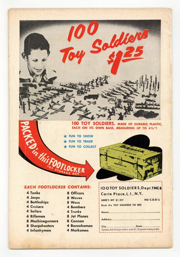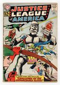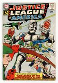 $30.00Cover pencils by Mike Sekowsky, inks by Murphy Anderson. The Challenge of the Untouchable Aliens!, script by Gardner Fox, pencils by Mike Sekowsky, inks by Bernard Sachs; Superman and Wonder Woman save the Satellite Sky Fortress, and The Flash sees its cannon aiming at a skyscraper in Central City. Superman and Wonder Woman destroy it, and they summon the Justice League; Searching the world, they find stone giants that can't be touched. Our Strange Universe article. 36 pgs. $0.12. Cover price $0.12.