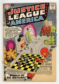 Cover art by Murphy Anderson. The World of No Return!, script by Gardner Fox, pencils by Mike Sekowsky, inks by Bernard Sachs; The Flash must beat Despero in a strange chess-like game to save the other members of the Justice League and the people of Despero's home dimension, Kalanor. Letter to the editor from comic writer Roy Thomas. 36 pgs. $0.10. Cover price $0.10.