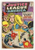 Tags: JLA/JSA Crossovers (part 2.1), Justice League/Society$90.00Cover pencils by Mike Sekowsky, inks by Murphy Anderson. Crisis on Earth-Three, script by Gardner Fox, pencils by Mike Sekowsky, inks by Bernard Sachs; The Crime Syndicate is so bored of life on their Earth as supreme villains, designated as Earth-3, that they come to the JLA's Earth for a new challenge after Ultraman accidentally discovers it when exposed to Green Kryptonite (which gives him a new power with every exposure to it); Just as it looks like the JLA has the upper hand, the Crime Syndicate teleports them to Earth-3, where they have the advantage; To secure a level battlefield the Crime Syndicate plans to go to the Earth-2 and eliminate the JSA. 1st Silver Age appearance of Star Man; Justice Society cross-over. Rocky and Bullwinkle star in a one-page Cheerios ad. 36 pgs. $0.12. Cover price $0.12.