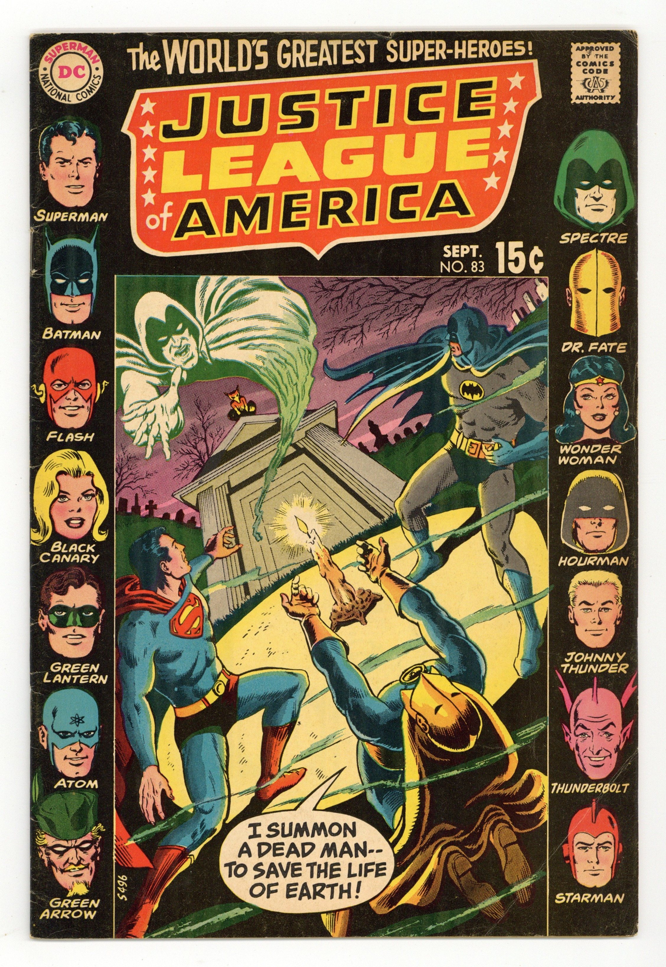 Cover pencils by Dick Dillin, inks by Murphy Anderson. Where Valor Fails... Will Magic Triumph?, script by Denny O'Neil, pencils by Dick Dillin, inks by Joe Giella; As the non-fallen members of both teams regroup to fight Creator2, the JSA decides to use magic vs. Creator2's science in order to defeat him, which works, as Red Tornado also breaks free from Creator2's hold on him to turn the tables and save the day; The then-fallen Earth 1 and 2 doppelganger heroes recover afterwards. Letter to the editor from comic writer Martin Pasko. 32 pgs. $0.15. Cover price $0.15.