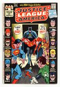 $23.00Cover art by Neal Adams. Earth-- The Monster-Maker!, script by Mike Friedrich, pencils by Dick Dillin, inks by Joe Giella; Three aliens are out on a joyride alongside their symbiotic pets when they lose control of their ship, resulting in one of the aliens being separated from his pet as they travel through the dimensional barrier separating Earths 1 and 2; As the JSA face off vs. the Alien A-Rym, he defeats them, as a result of the adult Robin charging in headstrong. Meanwhile, on Earth-1, as Batman leaves the JLA for another case he's working on, young college-aged Robin faces off alongside the team vs. Teppy, A-Rym's symbiotic pet, with the same actions and consequences; This results in Robin's uniform being torn up. The Day the World Melted featuring Knights of the Galaxy, script by Robert Kanigher, pencils by Carmine Infantino, inks by Joe Giella. The Hour Hourman Died! starring Hourman, script by Gardner Fox, pencils by Dick Dillin, inks by Sid Greene. Letter from editorial director Carmine Infantino on the inflation in the USA and National Publications raising the price of its comics. Harlan Ellison controversy in this issue.52 pgs. $0.25. Cover price $0.25.