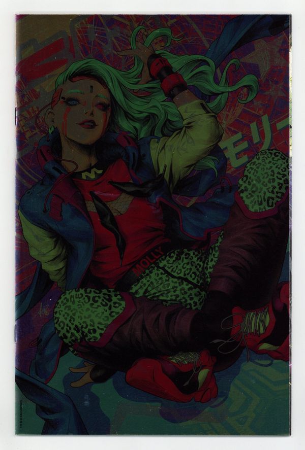 Tags: Batman$16.00Limited 1 for 50 Retailer Incentive Foil Variant Cover. Written by James Tynion IV. Art by Jorge Jimenez, Ricardo Lopez Ortiz. Cover by Stanley Artgerm Lau. Batman goes undercover to infiltrate the transhumanist gang known as the Unsanity Collective and learn more about their sudden appearance in Gotham. And what nefarious plans does Simon Saint have for Arkham Day survivor Sean Mahoney? How does it connect to the Magistrate? And in part two of the action-packed, bone-rattling Ghost-Maker backup story...can our hero stand up to the horror of Kid Kawaii? Plus, dont miss the debut of the mysterious Miracle Molly! 40 pages, full color. Rated T+ Cover price $5.99.