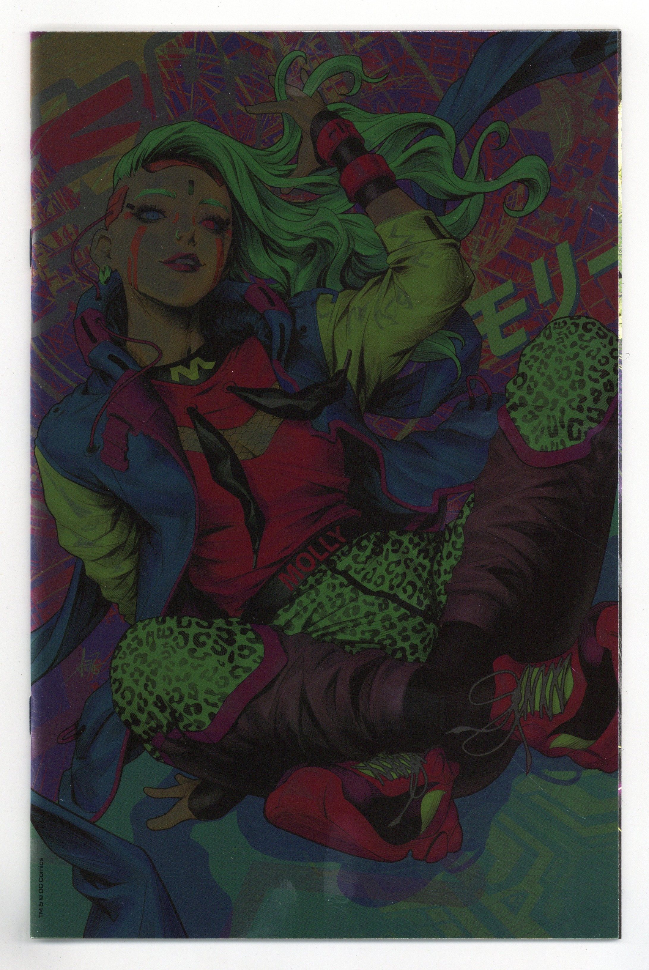 Limited 1 for 50 Retailer Incentive Foil Variant Cover. Written by James Tynion IV. Art by Jorge Jimenez, Ricardo Lopez Ortiz. Cover by Stanley Artgerm Lau. Batman goes undercover to infiltrate the transhumanist gang known as the Unsanity Collective and learn more about their sudden appearance in Gotham. And what nefarious plans does Simon Saint have for Arkham Day survivor Sean Mahoney? How does it connect to the Magistrate? And in part two of the action-packed, bone-rattling Ghost-Maker backup story...can our hero stand up to the horror of Kid Kawaii? Plus, dont miss the debut of the mysterious Miracle Molly! 40 pages, full color. Rated T+ Cover price $5.99.