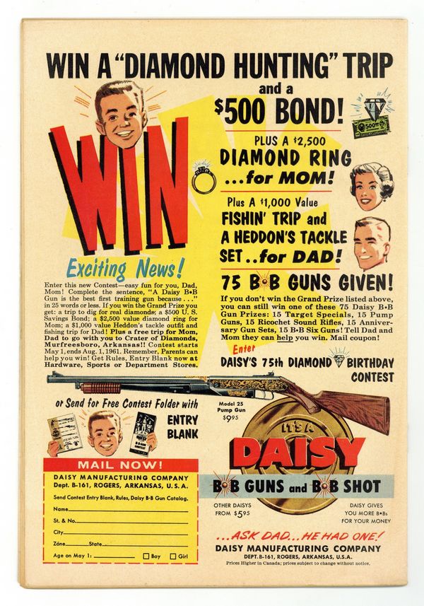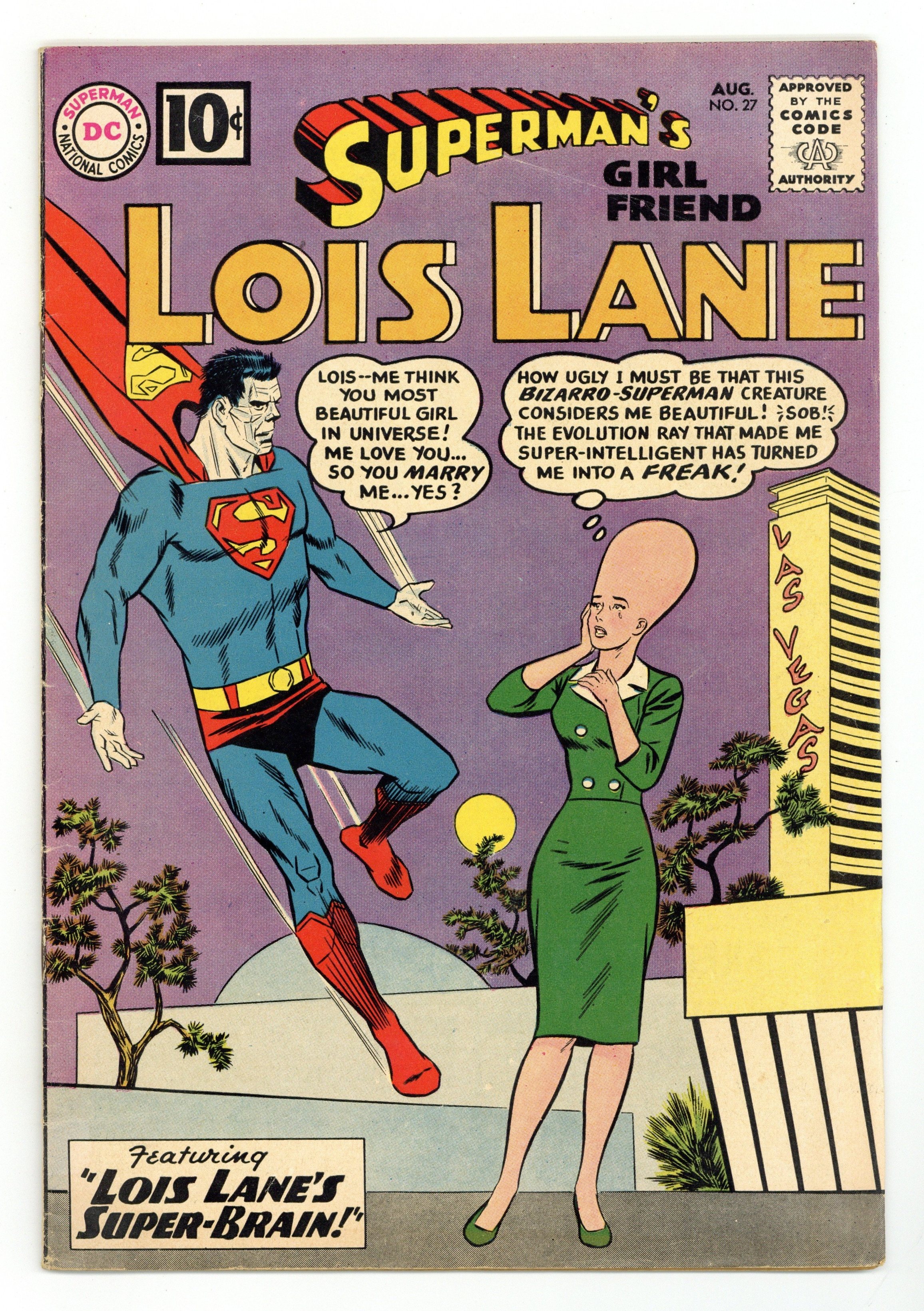 Cover pencils by Curt Swan, inks by Sheldon Moldoff. Lois Lane's Super-Brain!, script by Robert Bernstein, art by Kurt Schaffenberger; After tampering with Professor Holt's brain machine Lois gives herself super-intelligence, but also makes her head grow out of proportion with her body. House ad for Superman Annual #3. House ad for Secret Origins #1. The Battle of the Sisters!, pencils by Curt Swan, inks by Stan Kaye; Lois is shocked when Superman asks Lucy Lane to marry him. House ad for Batman Annual #1. The Last Days of Lois Lane!, script by Robert Bernstein, art by Kurt Schaffenberger; Lois believes she's got less than a week to live due to radiation poisoning and tries to get stories that no other reporter would attempt. 36 Pages, Full Color. Cover price $0.10.
