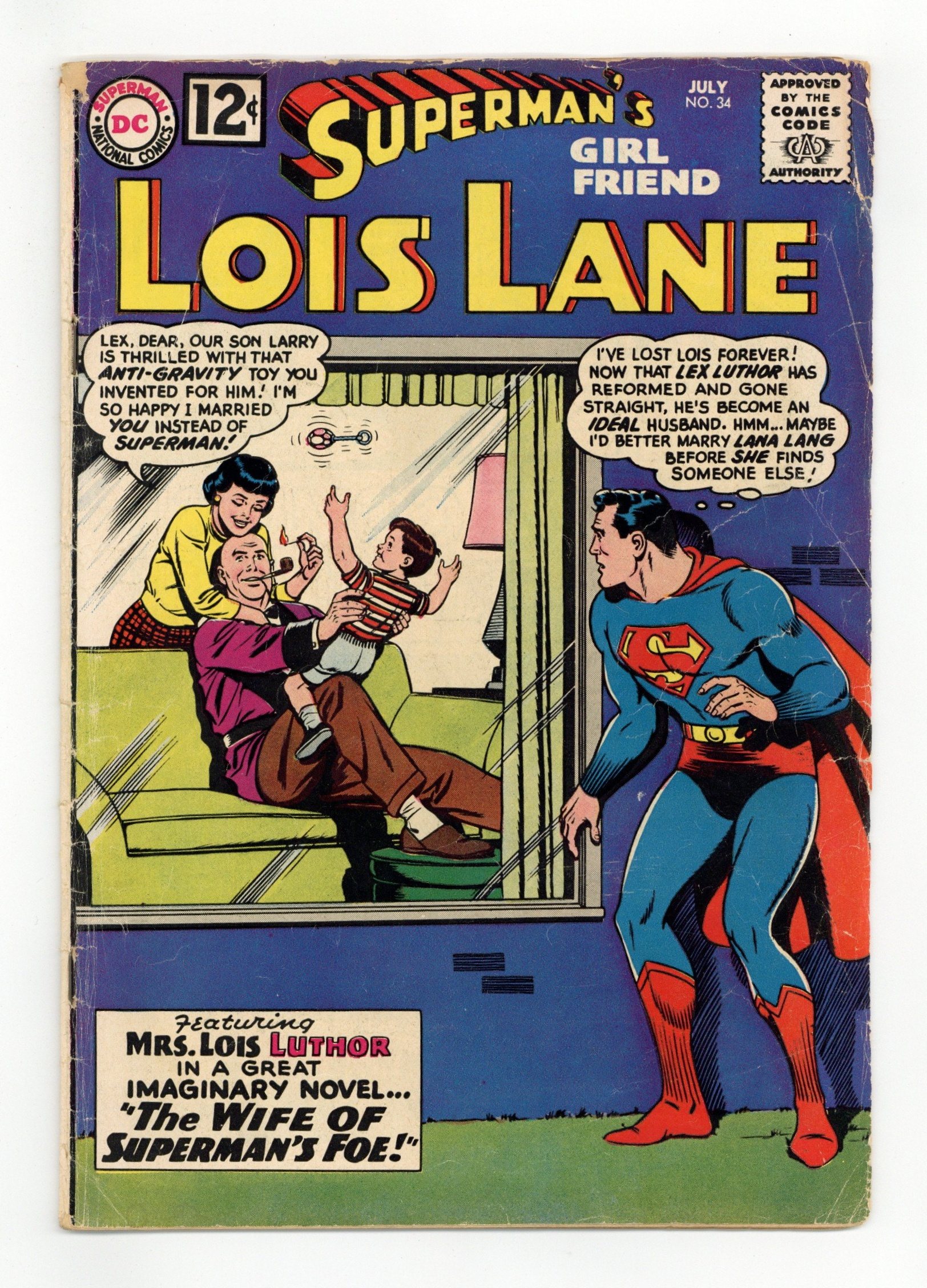 Cover art by Kurt Schaffenberger. The Bride of Luthor! [The Wife of Superman's Foe! Part I], script by Jerry Siegel, art by Kurt Schaffenberger; Luthor kidnaps Lois and takes her to another planet, but the inhabitants of that world use their powers to reform Luthor. House ad for Batman Annual #3. House ad for Lois Lane Annual #1. The Son of Luthor! [The Wife of Superman's Foe! Part II]; Lois and Lex have a son who grows up to be a juvenile delinquent. The boy accidentally kills his father and Superman pursues him into space. Be a Good Citizen! public service announcement starring Superman, script by Jack Schiff, art by Sheldon Moldoff. Lois Lane, Millionairess, art by Kurt Schaffenberger; When a rich amnesiac widow mistakes Lois for her long-lost daughter, it turns out to be a plot to lure Superman into a Kryptonite trap. 36 Pages, Full Color. Cover price $0.12.