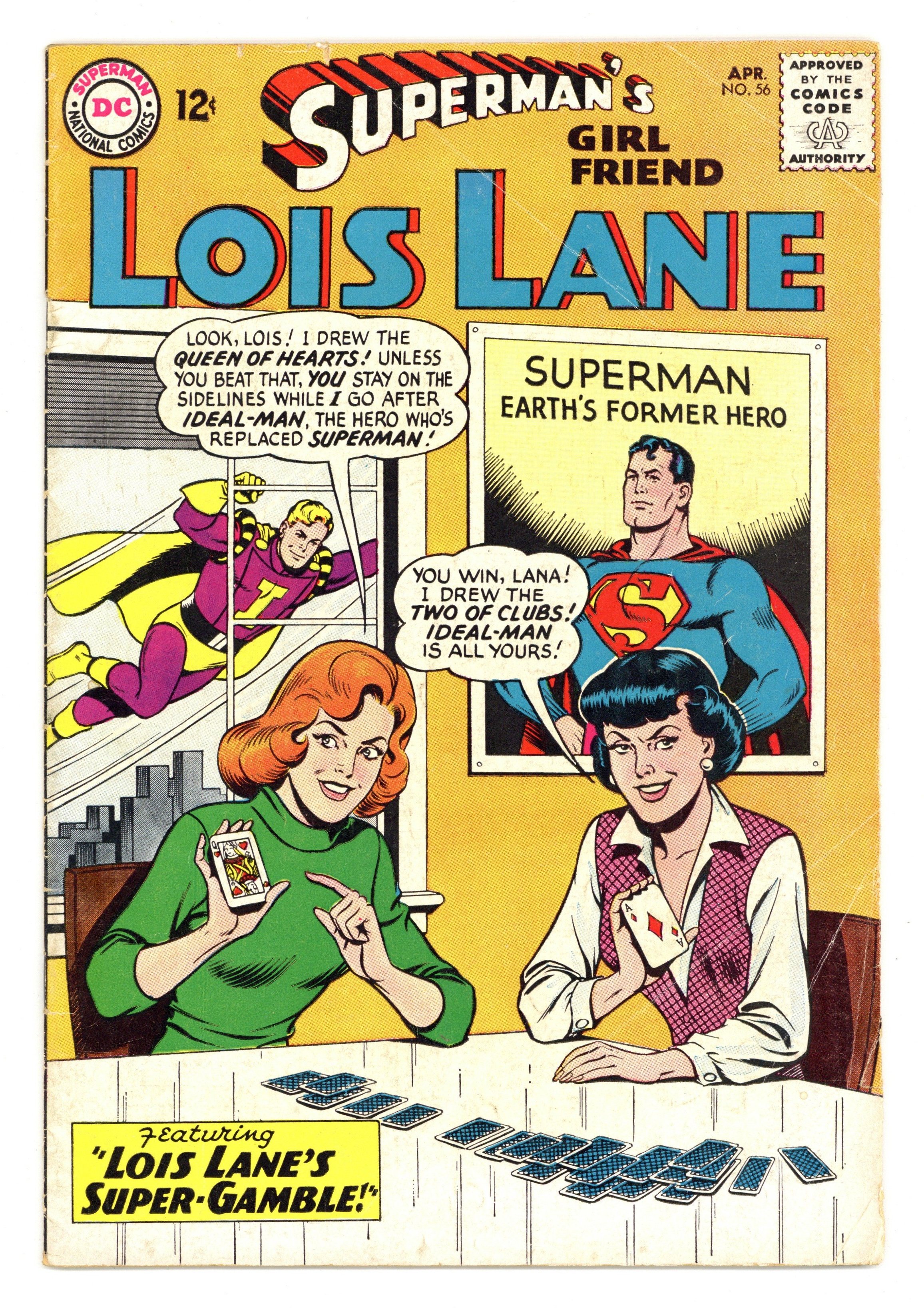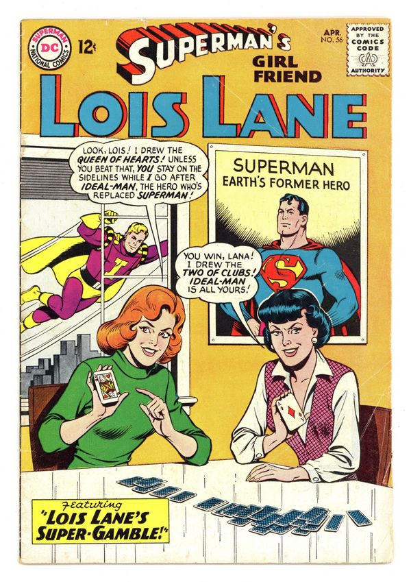 Cover art by Kurt Schaffenberger. The Snoopiest Girl in History!, script by Edmond Hamilton, art by Kurt Schaffenberger; Lois is accidentally transported to ancient Greece where she becomes the Pandora of Greek legends when she opens a box and releases a swarm of disease-carrying insects. Lois Lane, Super-Telepath!, script by Otto Binder, art by Kurt Schaffenberger; Lois Lane thinks she has telepathic powers. Lois Lane's Super-Gamble, script by Jerry Siegel, art by Kurt Schaffenberger; Lois wants Lana to marry Ideal-Man so that she won't be coming between Lois and Superman anymore. 36 Pages, Full Color. Cover price $0.12.
